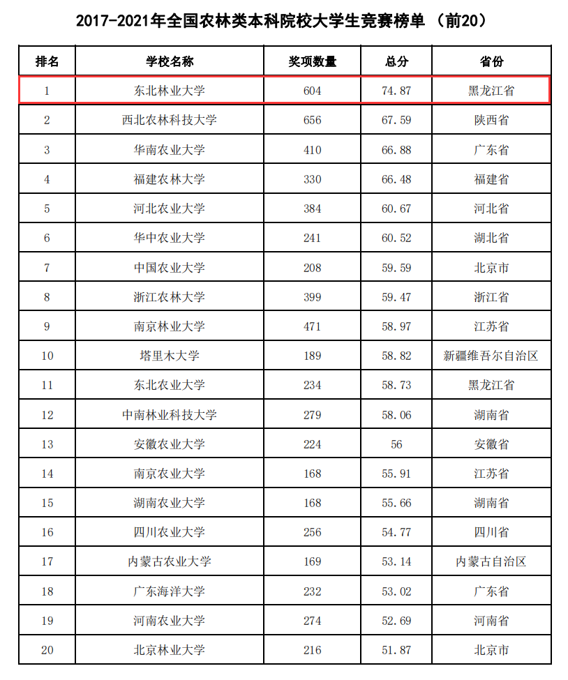 2月22日,中国高等教育学会高校竞赛评估与管理体系研究工作组发布2021全国普通高校大学生竞赛分析报告。我校在《2017-2021年农林类本科院校大学生竞赛排行榜TOP20》中,以总分74.87(获奖604项)的优异成绩,连续四年蝉联榜首。在2017-2021年本科榜单中,我校在全国本科高校中位居59位,是唯一一所进入前100的农林类高校,并且在“双一流”建设高校中位居49位(共144所)。中国高等教育学会自2017年2月启动《高校竞赛评估与管理...