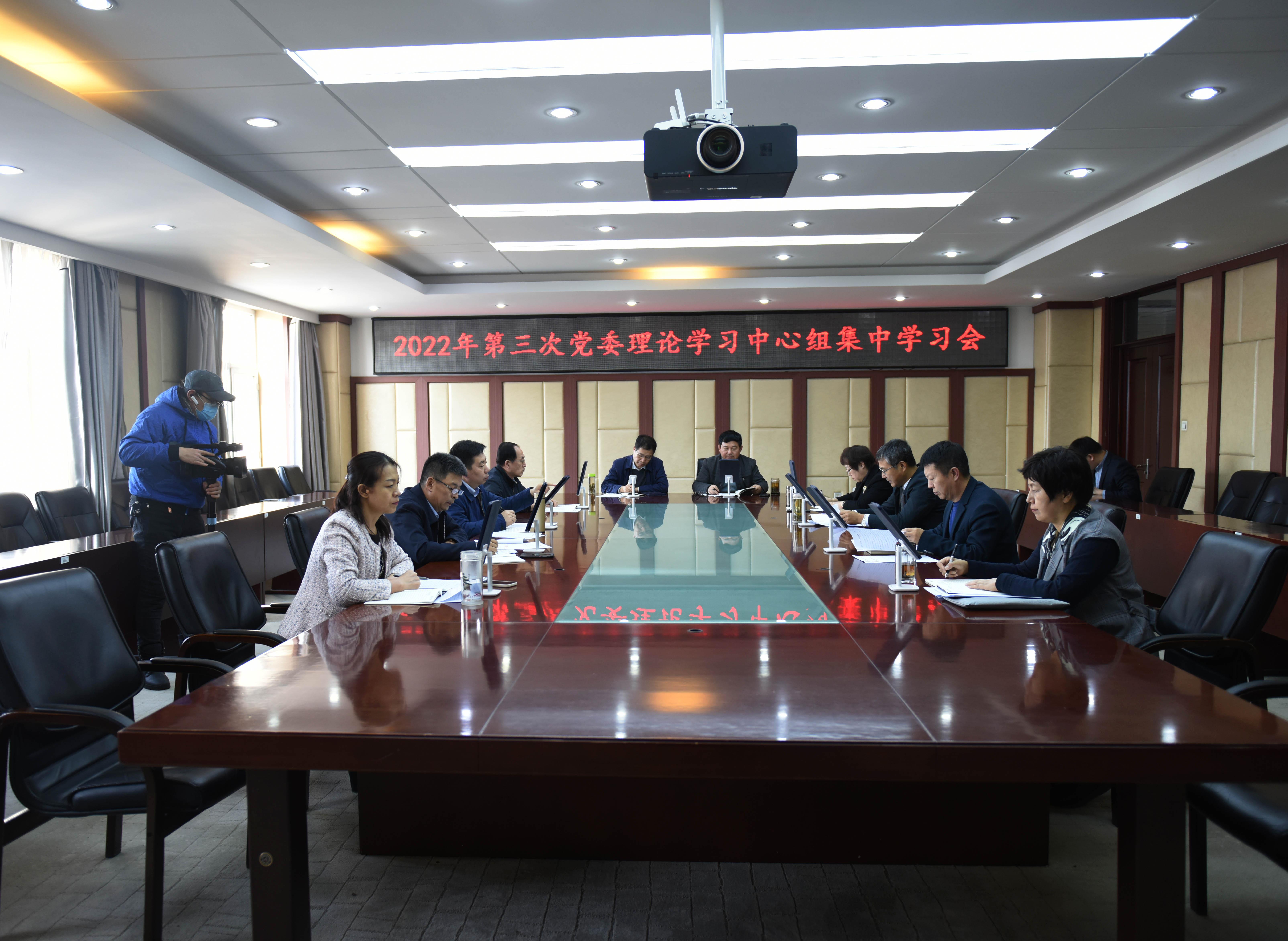 3月1日下午,校党委理论学习中心组在综合办公楼808会议室举行2022年第三次党委理论学习中心组集中学习会。学习会由党委书记张志坤主持。学习会上,党委常委、副校长雒文虎领学了习近平在2022年世界经济论坛视频会议的演讲和习近平总书记重要文章《不断做强做优做大我国数字经济》;党委常委、副校长李凤日领学了习近平总书记在主持十九届中共中央政治局第三十六次集体学习时的重要讲话精神;党委常委、宣传部部长、教师工作部部...