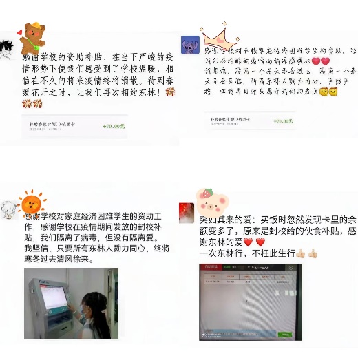 “我还奇怪,为什么卡里突然多出钱了,原来是学校发的伙食补贴。请学校放心,我们一定会好好吃饭,共抗疫情。”近日学生的朋友圈被“隐形伙食补贴”刷屏。据悉,为了解除家庭经济困难学生在疫情封校期间的后顾之忧,学校为3108名学生发放伙食补贴近10万元。日前,哈尔滨新冠肺炎疫情点状多发,学校党委果断采取封校举措,全力维护学校师生安全。封校期间,学校时刻关心牵挂在校家庭经济困难学生的学习生活现状。为了践行资助育...