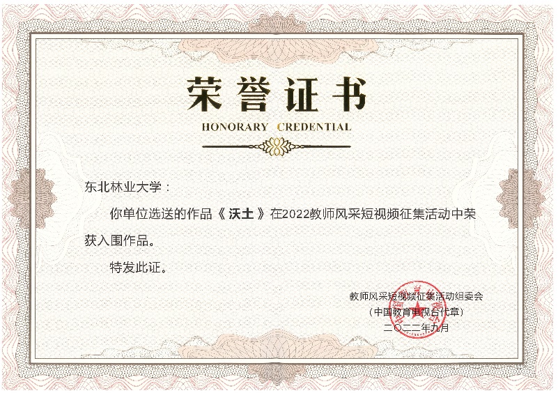 为广泛宣传新时代人民教师“四有好老师”的精神风貌,近日教育部举办了“2022年新时代教师风采短视频征集活动”,我校作品《沃土》从全国5000余部作品中脱颖而出,成功入选。《沃土》以我校林学院教授崔晓阳为第一视角,回顾他三十余载教育生涯,从初上讲台的敬畏与拘谨,到知命之年固守教育本心。他淡泊名利、潜心研究,春风化雨、立德树人,如自然界“最底层”滋养万物的沃土一般。他在修身治学、树木树人上不懈努力;在科研...