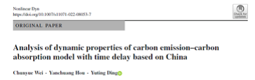 近日,我校理学院张春蕊教授微分方程团队的中青年教师丁宇婷副教授带领本科生科研团队,以东北林业大学为唯一单位在权威数学期刊《NonlinearDynamics》(SCI,Q1,IF=5.741)上发表了题为“Analysisofdynamicpropertiesofcarbonemission–carbonabsorptionmodelwithtimedelaybasedonChina”的研究论文,揭示了能源和经济对我国“双碳”问题的影响,为未来我国的碳中和事业提供了预估与建议。2020级数学与应用数学专业本科生韦椿...