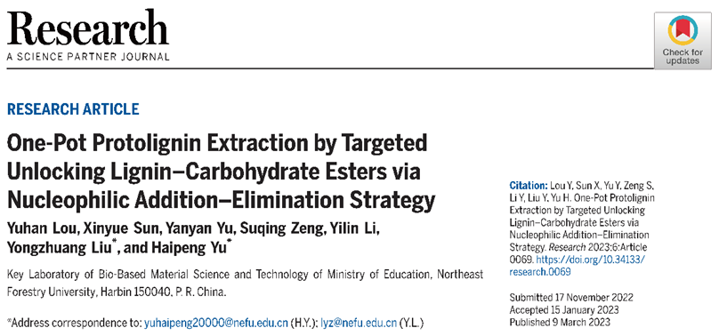 近日,我校生物质材料科学与技术教育部重点实验室于海鹏教授团队在深入解析木质素分子间和分子内构效的基础上,提出了一种精准解离化学键以分离天然木质素的新机制,该研究结果发表于高水平综合性期刊《Research》。天然木质素是一种广泛存在于植物体中主要由三种甲氧基化程度不同的4-羟基-肉桂醇经氧化聚合形成的无定形天然高分子。在生物炼制背景下,天然木质素的分离和结构解析对林木资源中木质素的形成路径、高效分离和下游...