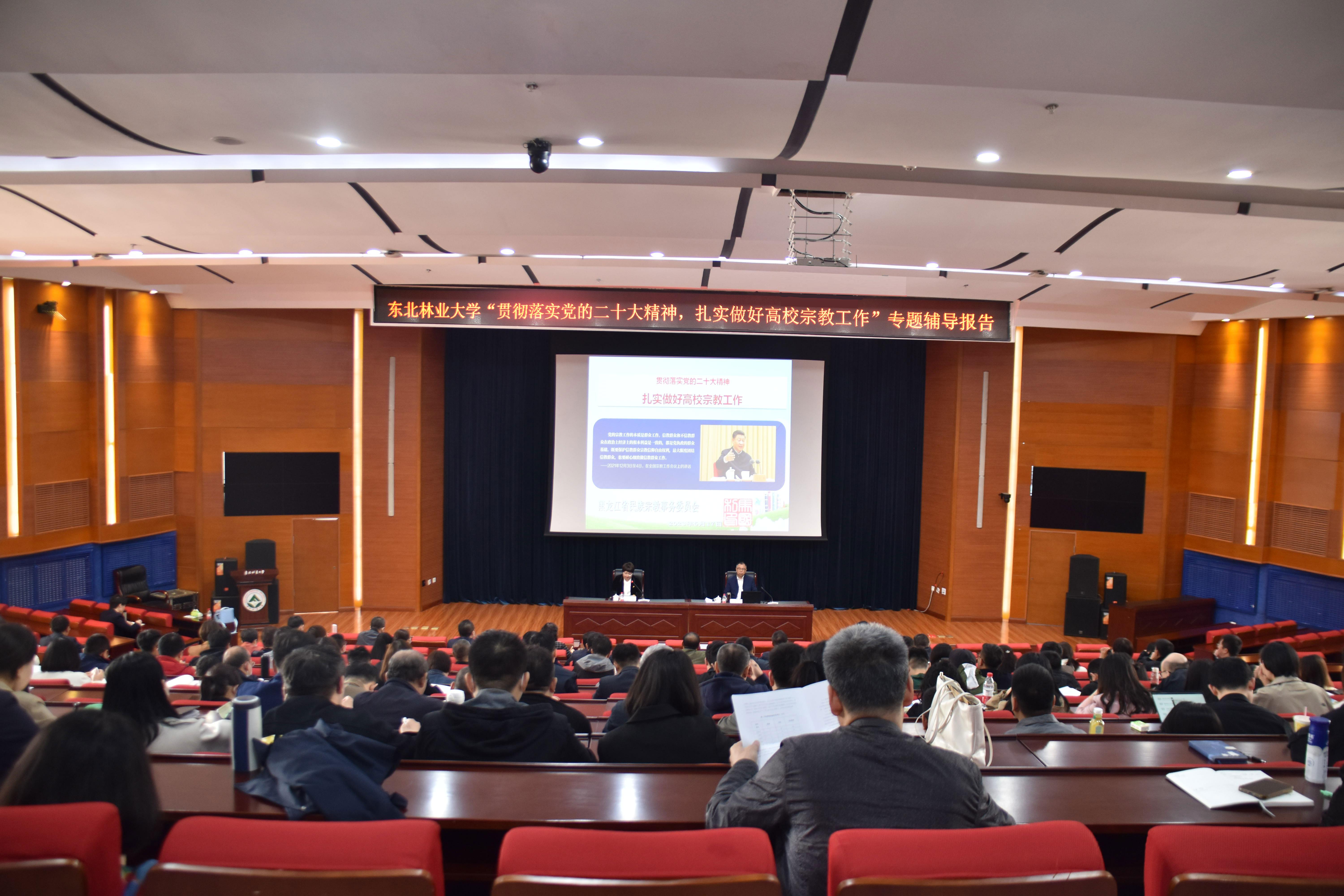 为贯彻落实党的二十大精神,提高学校学生政工干部队伍、思政课教师队伍以及党政干部队伍做好宗教工作的能力,推动主题教育理论学习走深走实,5月17日上午,学校邀请黑龙江省民族宗教事务委员会党组成员、副主任马国利,在成栋楼会议厅作了题为《贯彻落实党的二十大精神,扎实做好高校宗教工作》的专题辅导报告。学校民族宗教工作领导小组成员单位负责人,各二级党组织书记、统战委员,专职思政课教师,学生政工干部,机关全体中...
