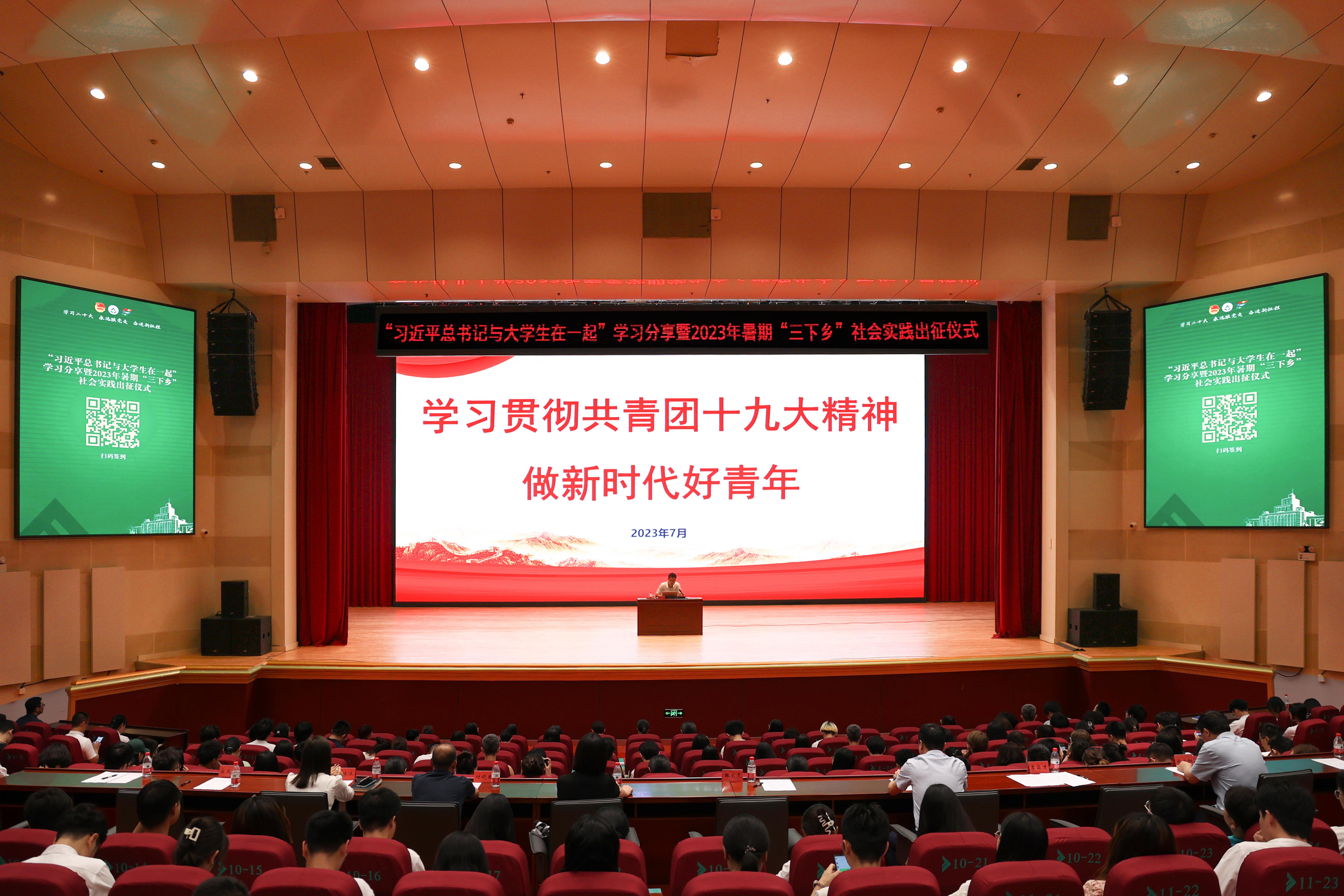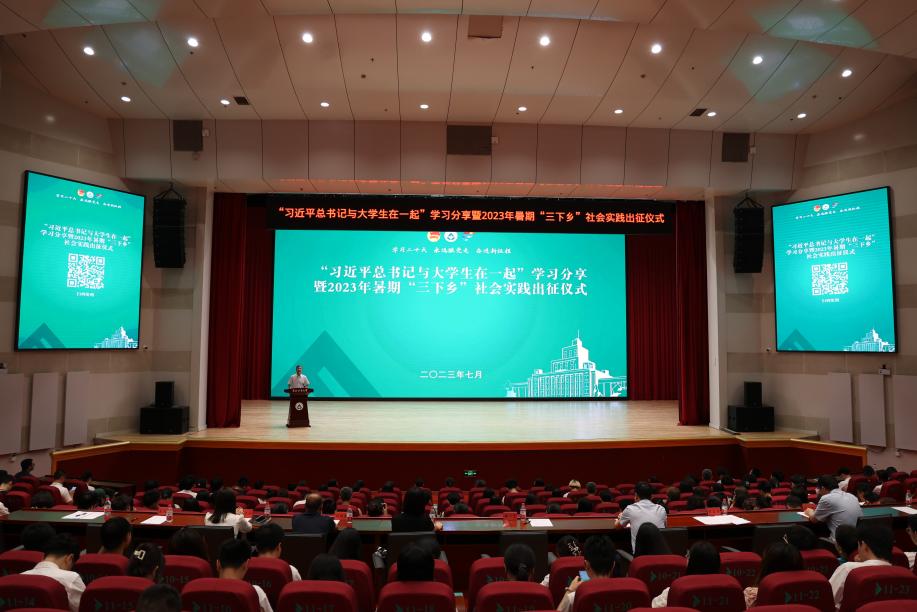 7月10日下午,学校“习近平总书记和大学生在一起”学习分享暨2023年暑期“三下乡”社会实践出征仪式在科学会堂举行。学校党委常委、副校长雒文虎参加仪式。仪式上,雒文虎作了动员讲话。他表示,多年来学校高度重视大学生社会实践工作,形成了富有成效的工作机制模式,为学校人才培养作出了积极贡献。雒文虎对同学们积极参与社会实践表示赞赏,同时对参与实践的师生们提出了希望和要求:一是要在实践中感悟伟大历史变革,坚定理...