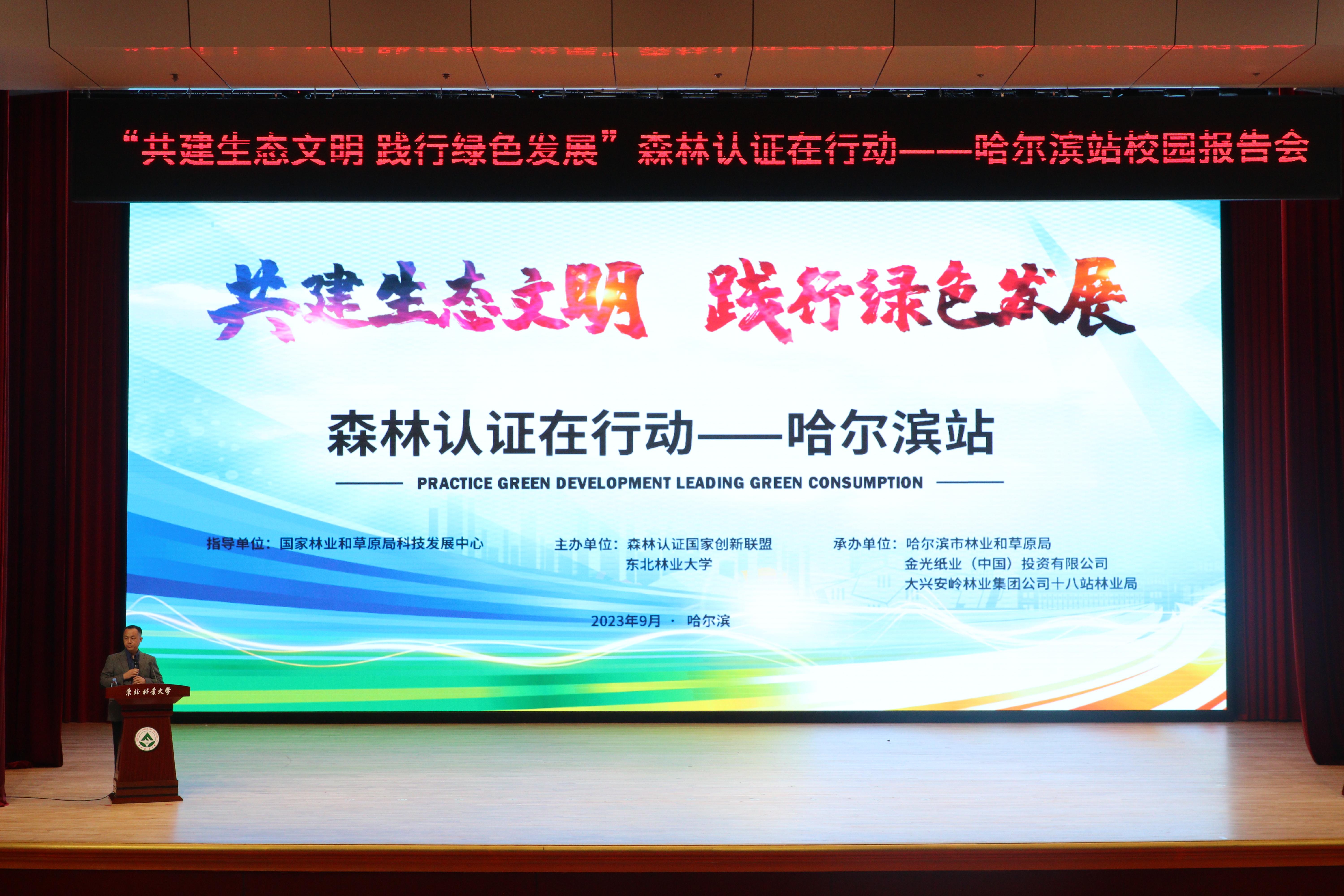 9月23日下午,2023年“森林认证在行动”哈尔滨站启动仪式在我校举行。国家林业和草原局科技发展中心一级巡视员李天送,中国森林认证委员会主任王伟,中国林业科学研究院副院长、国家林草碳汇研究院副院长肖文发,学校党委常委、副校长孙猛出席活动。孙猛代表学校致辞,他对与会领导、专家表示欢迎,同时介绍了学校发展建设情况。他表示,作为林业院校,东林要积极参加森林认证活动,加大生态文明宣传力度和深度,全面提升公众...