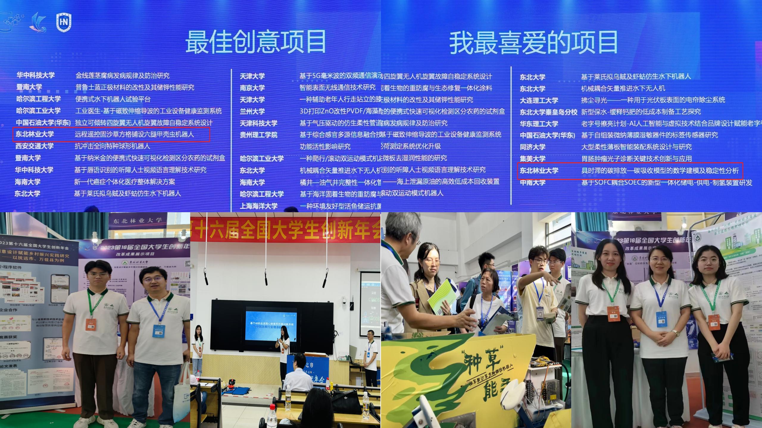 12月8日至10日,第十六届全国大学生创新年会在海南大学举办。我校5个国创项目在第十六届全国大学生创新年会获展示。项目获评年会“最佳创意项目”1项、“我最喜爱的项目”1项。机电工程学院教师常同立指导,袁杰潮团队负责的《远程遥控固沙草方格铺设六腿甲壳虫机器人》,获评年会“最佳创意项目”;理学院教师丁宇婷指导,韦椿悦团队负责的《具时滞的碳排放—碳吸收模型的数学建模及稳定性分析》获评年会“我最喜爱的项目”。...