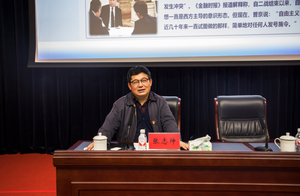 为模范践行习近平总书记在全国学校思想政治理论课教师座谈会讲话中提出的领导干部带头讲思想政治理论课的要求,进一步深入一线与学生面对面开展大学生思想政治教育,推动学校“不忘初心、牢记使命”主题教育不断深入。10月28日下午,学校党委书记张志坤以《“‘百年未有之大变局’都有哪些‘变’”——关于“百年未有之大变局”战略命题的一点解读》为题,在成栋楼四楼会议室为学生和?全体学生思政工作干部上了一堂内涵丰富、...