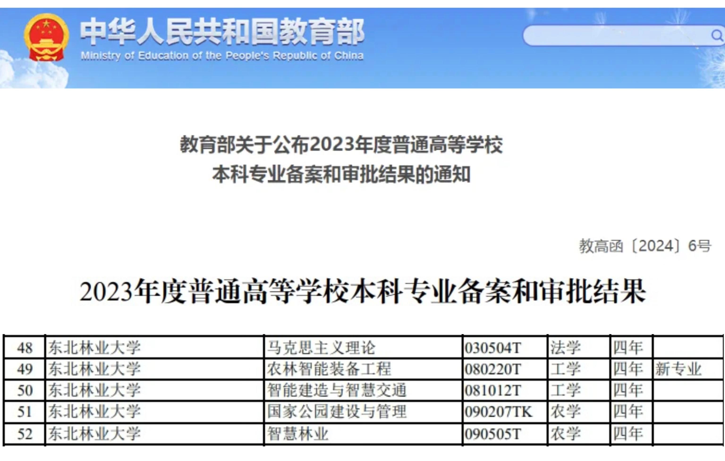日前,教育部公布了2023年度普通高等学校本科专业备案和审批结果,我校马克思主义理论、农林智能装备工程、智能建造与智慧交通、国家公园建设与管理、智慧林业5个专业获批增设。其中农林智能装备工程为“目录外新增审批本科专业”,为全国首次设置。我校2023年新增本科专业目录近年来,学校坚持“质量、绿色、创新、合作”的内涵发展道路,强化以“林”育人,积极对标科教兴国战略,启动了学科专业调整优化工作。本次新专业的获...