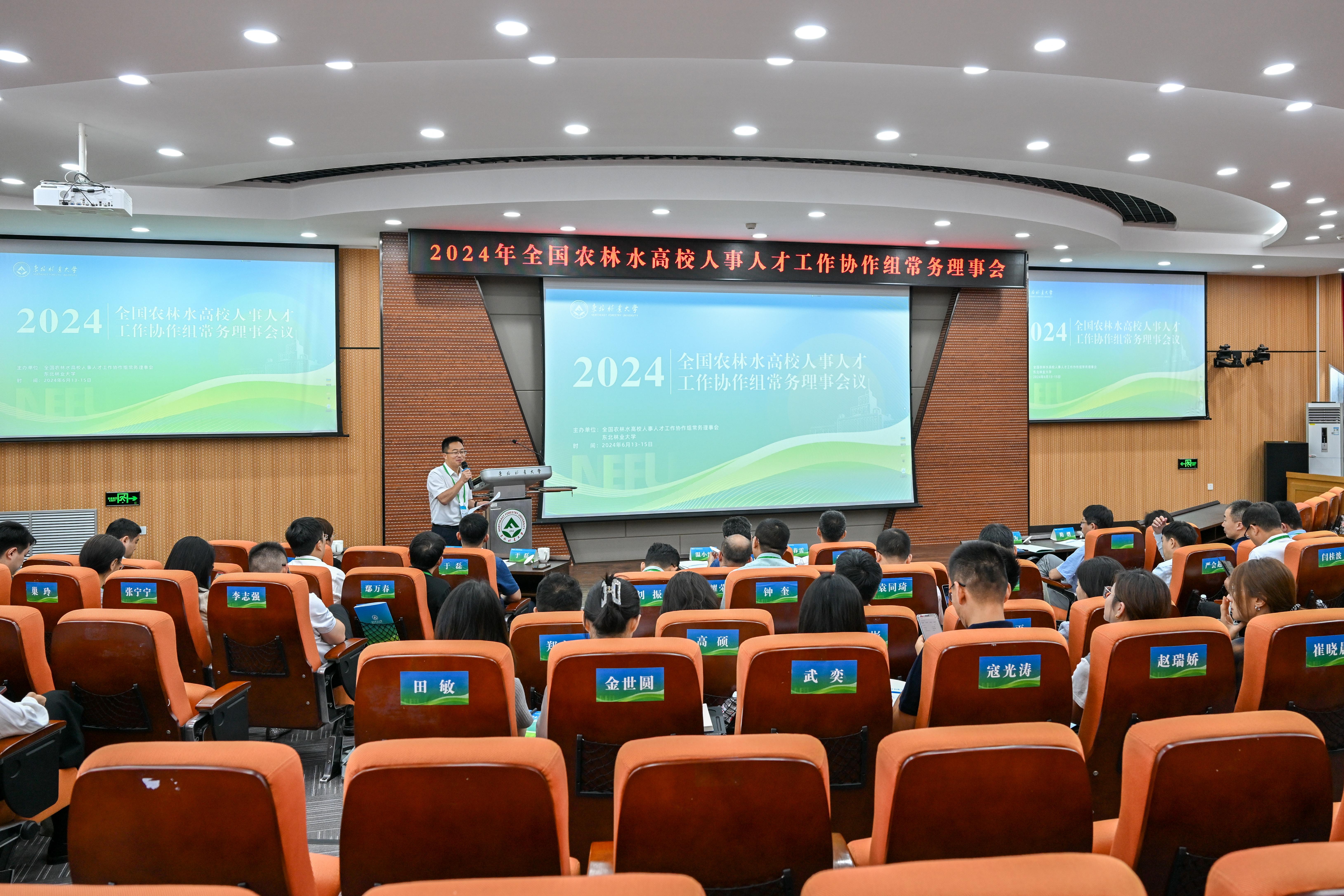 6月14日上午,全国农林水高校人事人才工作协作组2024年常务理事会在我校奥林学院101室举行。安徽农业大学党委常委、副校长吴祥为,华南农业大学副校长温小波,东北林业大学党委常委、副校长张春雷等出席会议。来自15所全国农林水高校人事人才工作协作组常务理事成员单位的近60位代表参加会议。会议开幕式由我校人才办公室主任兼人事处副处长、党委组织部副部长陈立君主持。本次会议主题为“新时代农林水高校人才发展体制机制改...