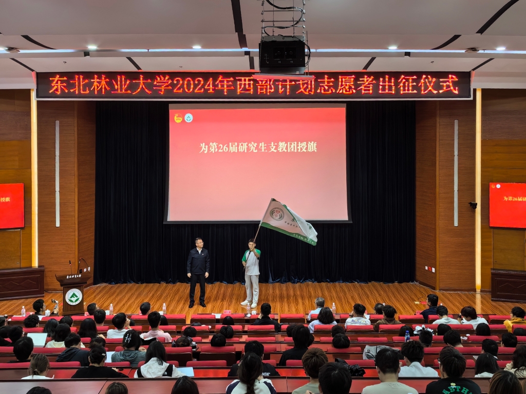 6月24日下午,“青春为中国式现代化挺膺担当”东北林业大学2024年西部计划志愿者出征仪式在学校成栋楼4楼会议室举行,学校党委常委、副校长张春雷出席仪式。张春雷为第26届研究生支教团授旗并讲话。他向即将出征的西部计划志愿者表示热烈的祝贺,向一直关心、支持学校西部计划工作的师生致以诚挚的问候。他代表学校向同学们提出三点希望:一是要坚定跟党走的信念,二是要扎根西部基层,三是要恪守教师职责。他勉励志愿者们要牢...
