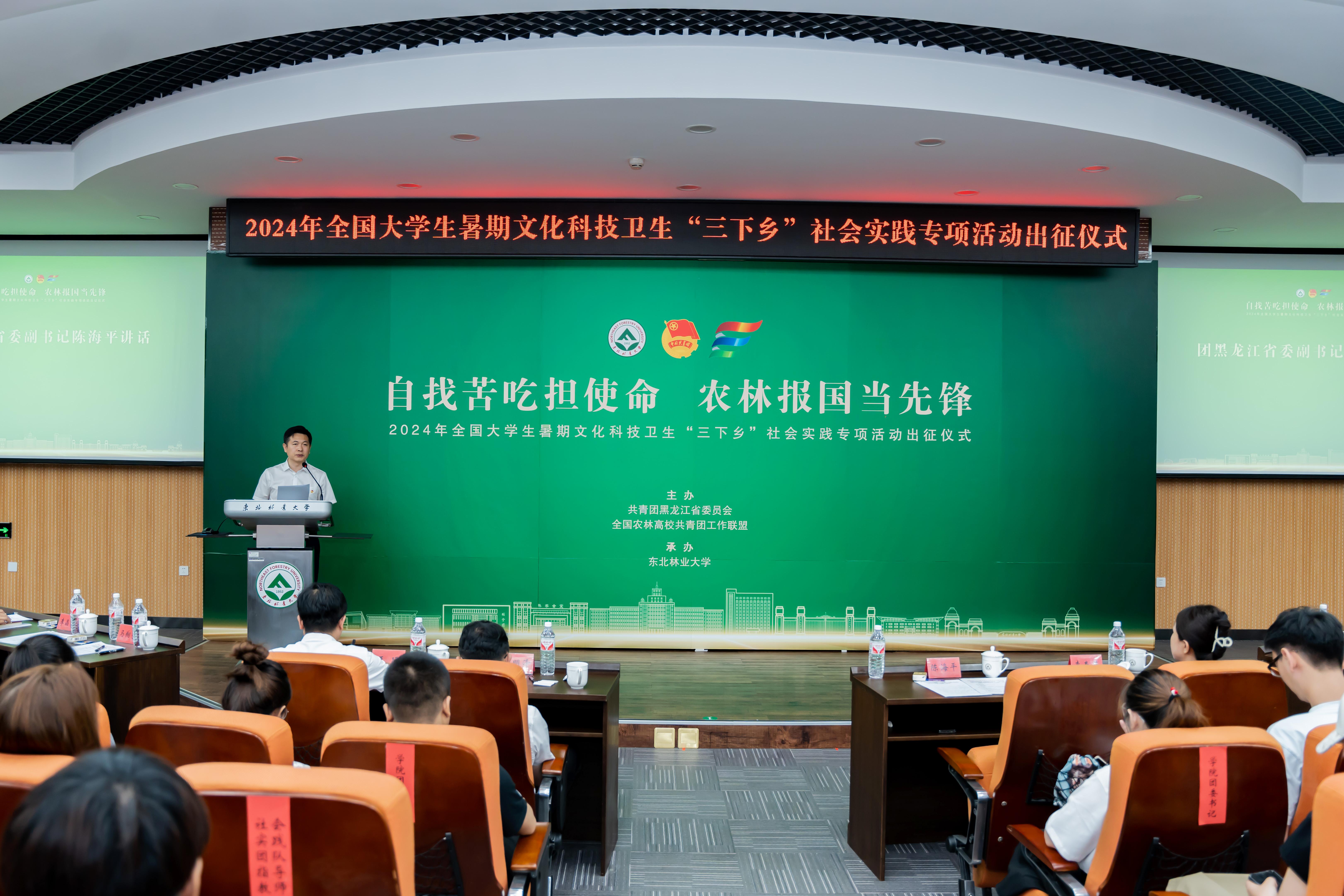 7月18日,“自找苦吃担使命农林报国当先锋”2024年全国大学生暑期文化科技卫生“三下乡”社会实践专项活动出征仪式在我校奥林楼101报告厅隆重举行。仪式上,学校党委常委、副校长李明泽致欢迎辞,对立项团队表示祝贺,并表达了对来自全国各地大学生团队的热烈欢迎。对同学们更加积极主动地投身社会实践这门“必修课”提出了希望。共青团黑龙江省委副书记陈海平作了讲话,他向入选团队表示祝贺,并代表龙江向实践团队发出邀约,...