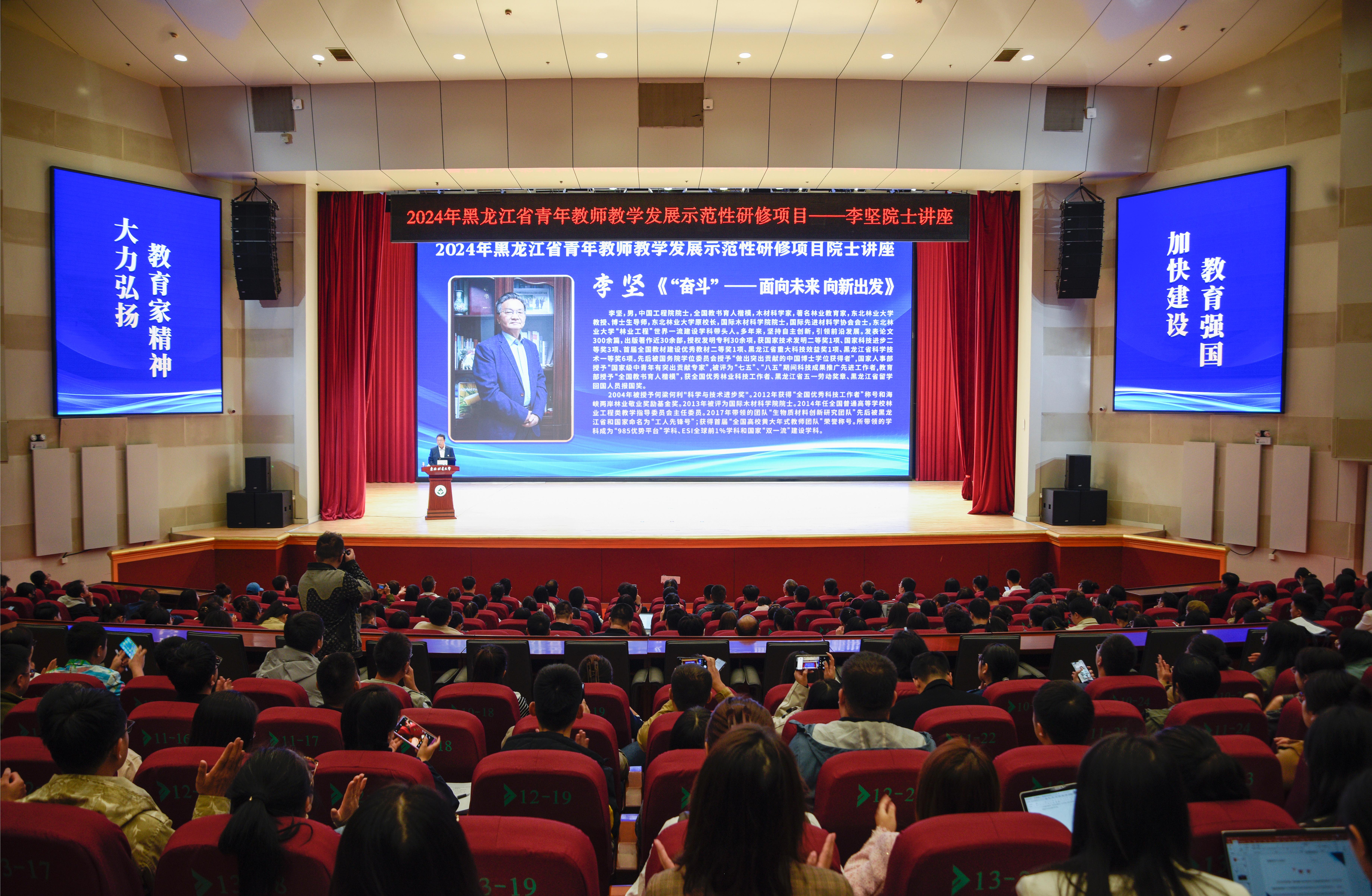 为大力弘扬教育家精神,加快建设教育强国,培养造就高素质教师队伍,9月26日上午,2024年度全国教书育人楷模、中国工程院院士、我校材料科学与工程学院教授李坚,在学校科学会堂为2024年黑龙江省青年教师教学发展示范性研修学员作专题讲座,传授为人、为师、治学的宝贵经验。学校党委常委、副校长李明泽主持讲座。李坚院士今年81岁,一直在用实际行动践行着教育家精神,他不仅用自己的科研服务祖国需要,还培养了众多优秀弟子,...