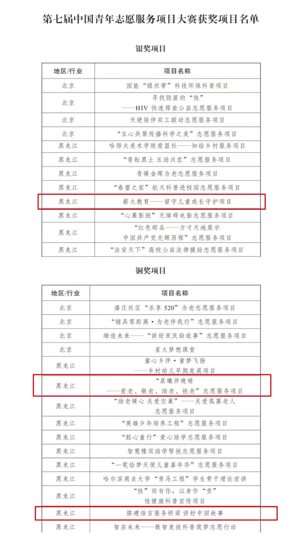 日前,第七届中国青年志愿服务项目大赛在广东汕头落幕,经组织申报、省级推报、资格审核、国赛评选、公示等工作环节,学校理学院“薪火教育——留守儿童成长守护项目”荣获银奖,机电工程学院“晨曦伴晚晴—爱老、敬老、助老、扶老”志愿服务项目、外国语学院“搭建语言服务桥梁讲好中国故事”项目分获铜奖。本次大赛由共青团中央、中央社会工作部、民政部、水利部、文化和旅游部、国家卫生健康委、中国残联联合中共广东省委、...