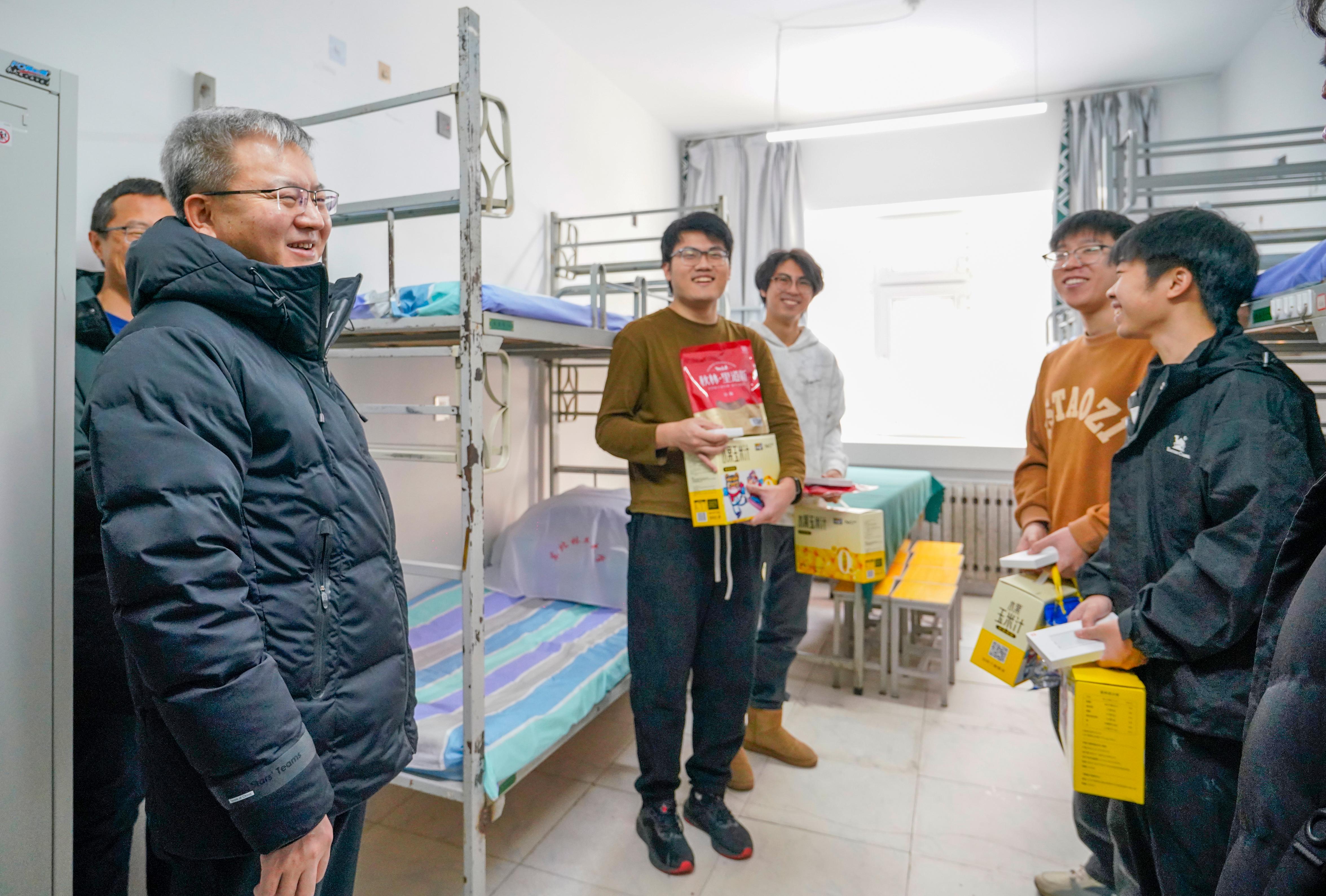 “大家春节还坚守在岗位,辛苦了!”“向你们的家人问好!”“祝你们新春快乐!”1月28日,除夕当天,学校党委书记孙猛、校长宋文龙先后到总值班室、国际交流学院、保卫处、后勤保障部、变电所、志愿者之家等地,慰问坚守在岗位的师生,向他们致以节日的问候和新春的祝福。“春节期间值班意义重大,你们辛苦了。”在总值班室,校领导向放弃与家人团聚而坚守在岗位的同志表示慰问。得知学校有100余名留学生在校,校领导叮嘱国际...