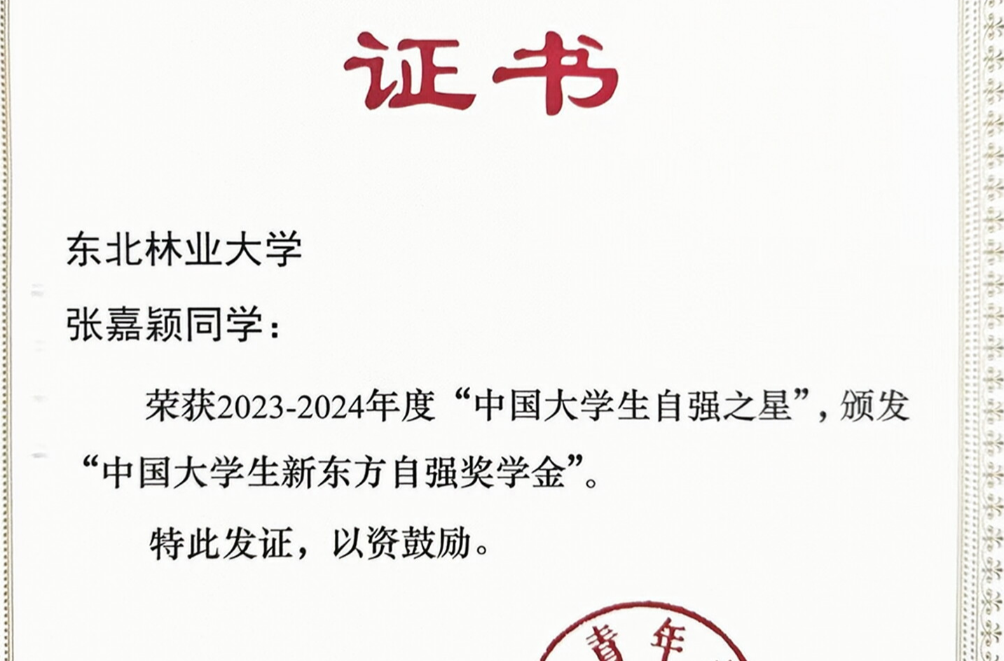 近日,2023—2024年度“中国大学生自强之星”奖学金获得者名单揭晓,学校理学院张嘉颖获评“中国大学生自强之星”荣誉称号,获得“中国大学生新东方自强奖学金”。张嘉颖是理学院数学与应用数学2021级本科生,曾任学校绿冀青年志愿者协会志愿者部部长,学院团委科创部部长。曾获中国国际大学生创新大赛铜奖、中国青年志愿服务项目大赛银奖,“挑战杯”中国大学生创业计划竞赛黑龙江赛区金奖、中国国际“互联网+”大学生创新创业...