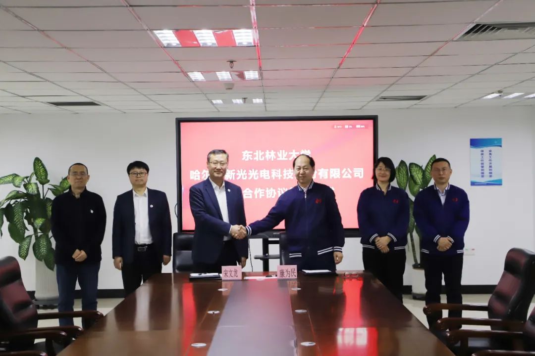 近日,校长宋文龙,校长助理、林学院院长孙龙,以及相关领域专家在哈尔滨新光光电科技股份有限公司调研参观,双方签署战略合作协议,标志着校企合作迈向新高度。在新光光电董事长康为民,副总经理曲波,副总经理仇帅辉等人陪同下,我校人员参观了企业展厅。曲波详细介绍了新光光电产品的技术优势、市场前景及创新成果。在座谈交流环节,康为民对宋文龙一行表示欢迎,分享了企业发展规划,重点介绍了近年来与学校相关科研团队合...