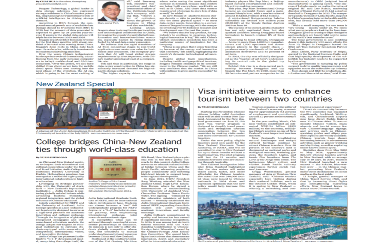 6月20日,在新西兰总理拉克森首次访华之际,《中国日报》(ChinaDaily)以《奥林学院通过世界一流教育为中新关系搭建桥梁》为题,报道了东北林业大学中外合作办学育人成效。报道提到,随着中国与新西兰在“一带一路”倡议下持续深化教育文化合作,位于黑龙江省哈尔滨市的东北林业大学奥林学院已成为高等教育国际优质合作的典范。依托东北林业大学与新西兰顶尖学府奥克兰大学的战略伙伴关系,奥林学院在培养具有全球视野的高层次...