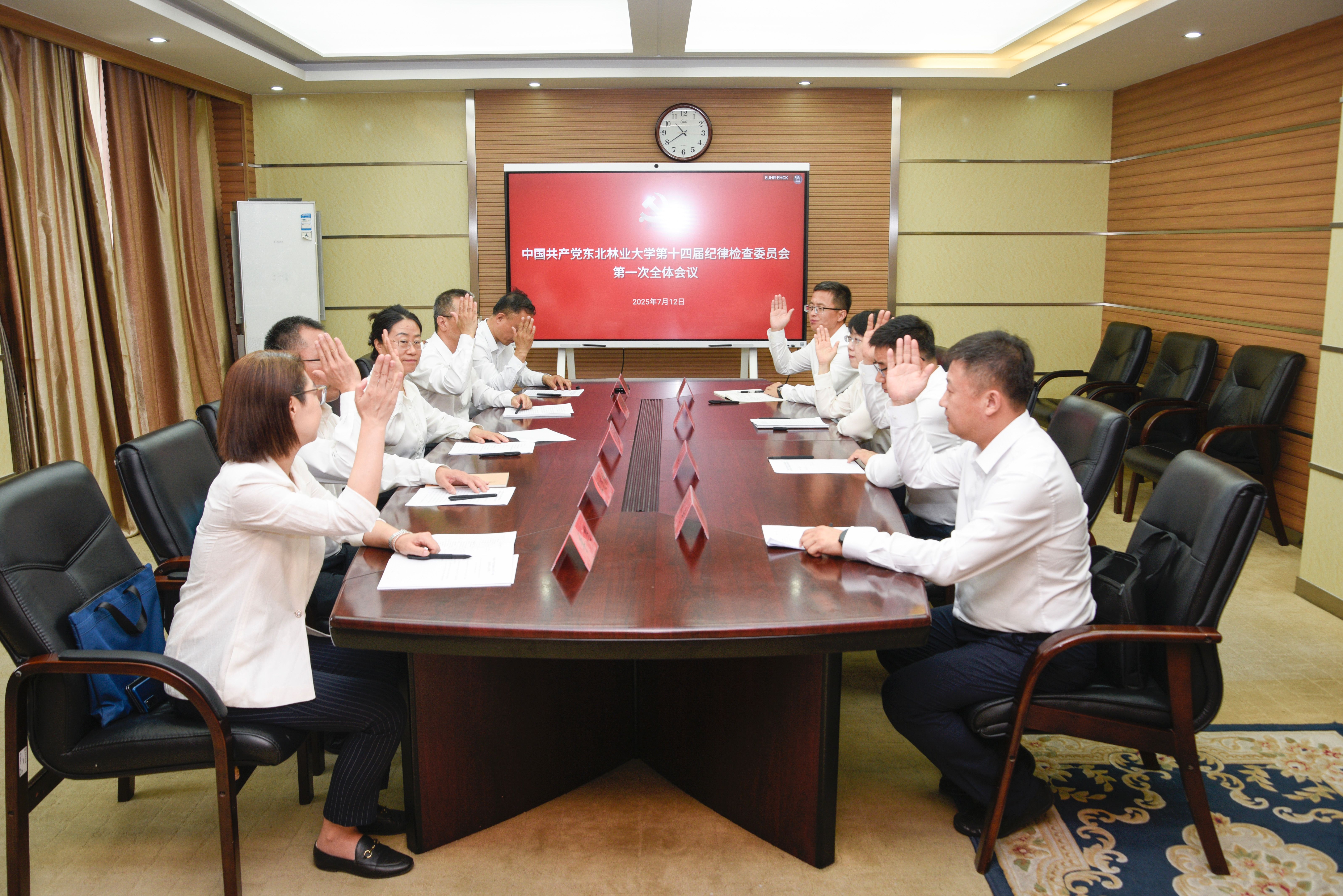 7月12日,我校第十四次党代会胜利闭幕后,中国共产党东北林业大学第十四届纪律检查委员会在综合办公楼807会议室召开第一次全体会议。会议应到会纪委委员9名,实到9名。宋吉红同志主持会议。会议通过了《中国共产党东北林业大学纪律检查委员会第一次全体会议选举办法》,选举产生了中国共产党东北林业大学第十四届纪律检查委员会书记、副书记。经中国共产党东北林业大学第十四届委员会第一次全体会议审议通过,宋吉红同志当选新...