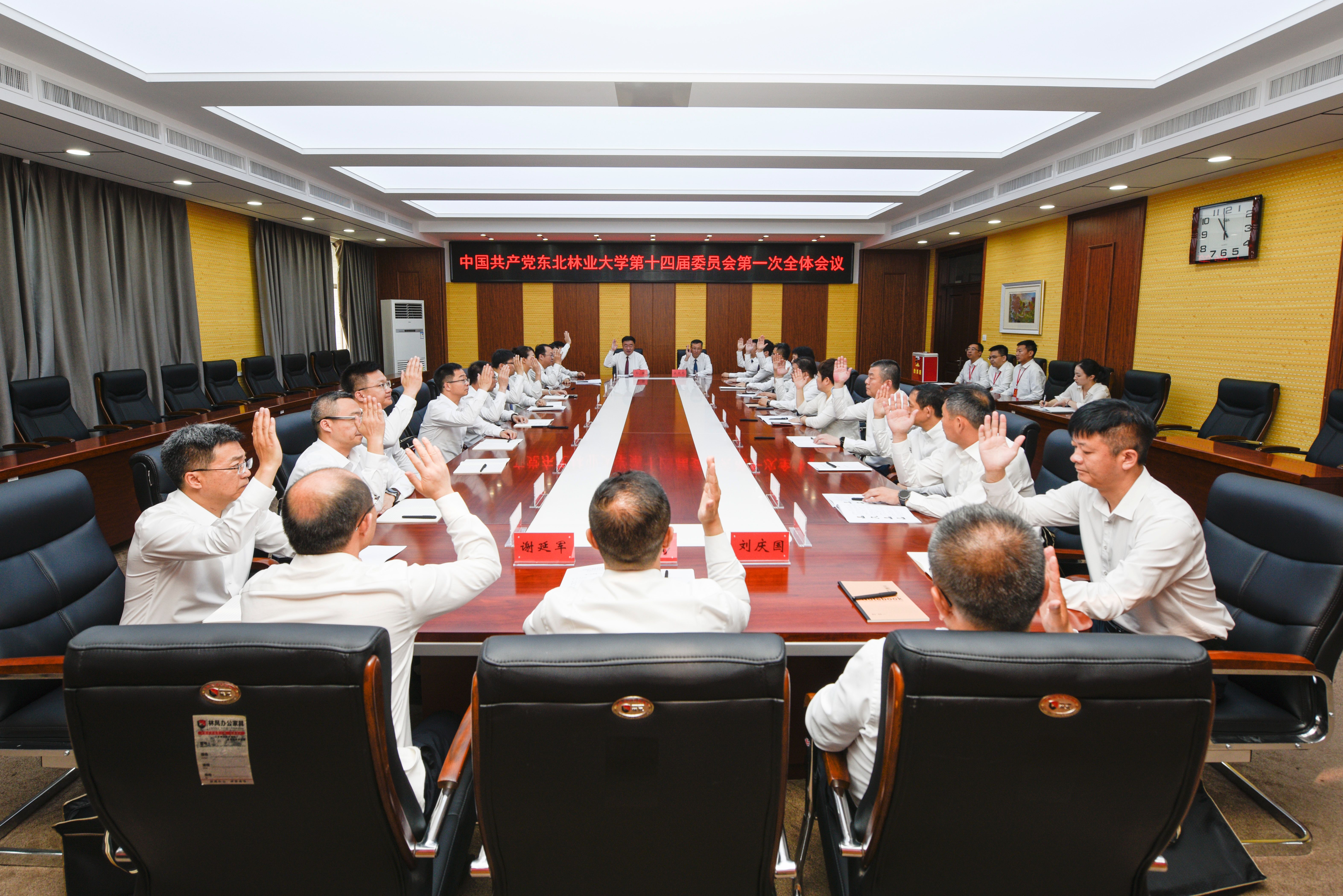 7月12日,我校第十四次党代会胜利闭幕后,中国共产党东北林业大学第十四届委员会在综合办公楼10楼会议室召开第一次全体会议。会议应到会党委委员26名,实到25名。孙猛同志主持会议。会议通过了中共东北林业大学第十四届纪律检查委员会第一次全体会议选举结果的报告。会议通过了《中国共产党东北林业大学第十四届委员会第一次全体会议选举办法》,选举产生了中共东北林业大学第十四届委员会书记、副书记、常务委员会委员。当选名...