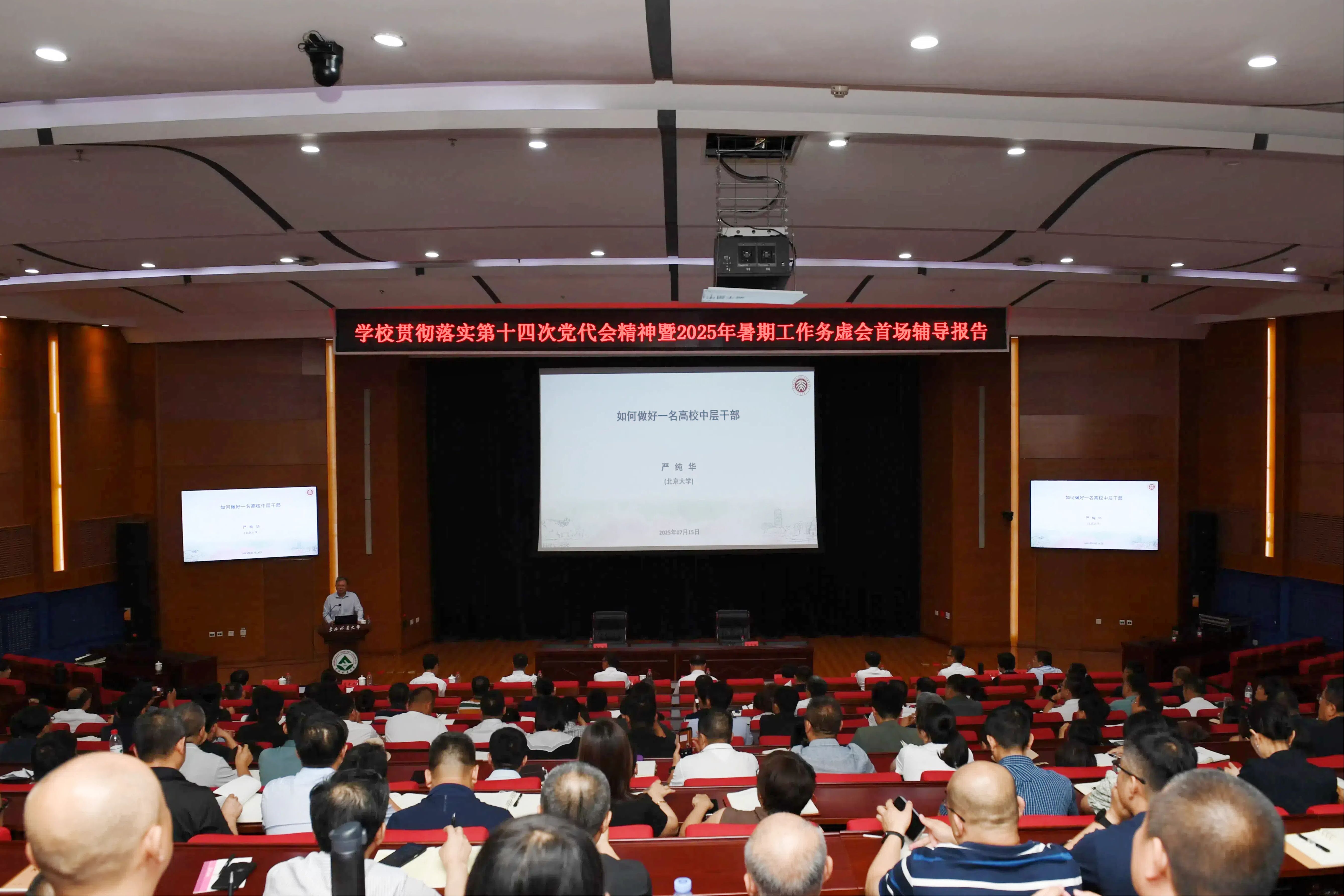 为迅速掀起学习宣传学校第十四次党代会精神热潮,深刻把握教育强国建设的任务要求,7月15日下午,学校举行2025年暑期工作务虚会首场辅导报告会。中国科学院院士、发展中国家科学院院士、兰州大学原校长严纯华教授作题为《如何做好一名高校中层干部》的辅导报告。全体在家校领导,全体中层干部参加会议。学校党委副书记翟雪峰主持报告会。严纯华院士是国际著名稀土科学家,主要从事稀土分离理论、应用及稀土功能材料研究,曾任北...