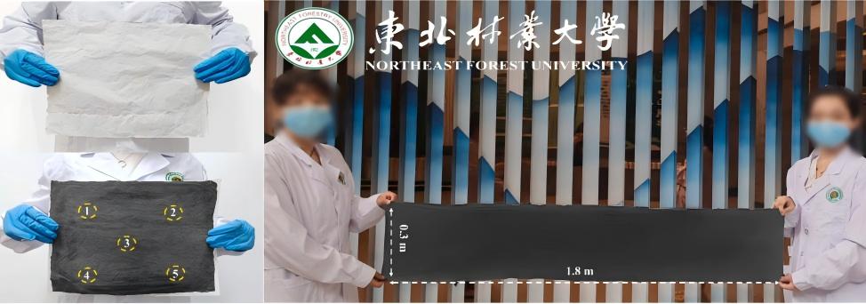 以木质资源和无醛仿生胶黏剂为原料,通过连续化超薄高密度纤维板制造工艺集成创新,开发了仿生超薄纤维板产品。该产品厚度低至0.5 mm,游离甲醛释放量低至环保最高级-HENF级(采暖级),总挥发性有机化合物(TVOC)释放浓度≤6μg/m3,达到最高级Ⅰ级标准。各项理化性能满足团体标准《超薄高密度纤维板》要求:内结合和表结合强度,比标准提升100%,防水性能比标准提升30%