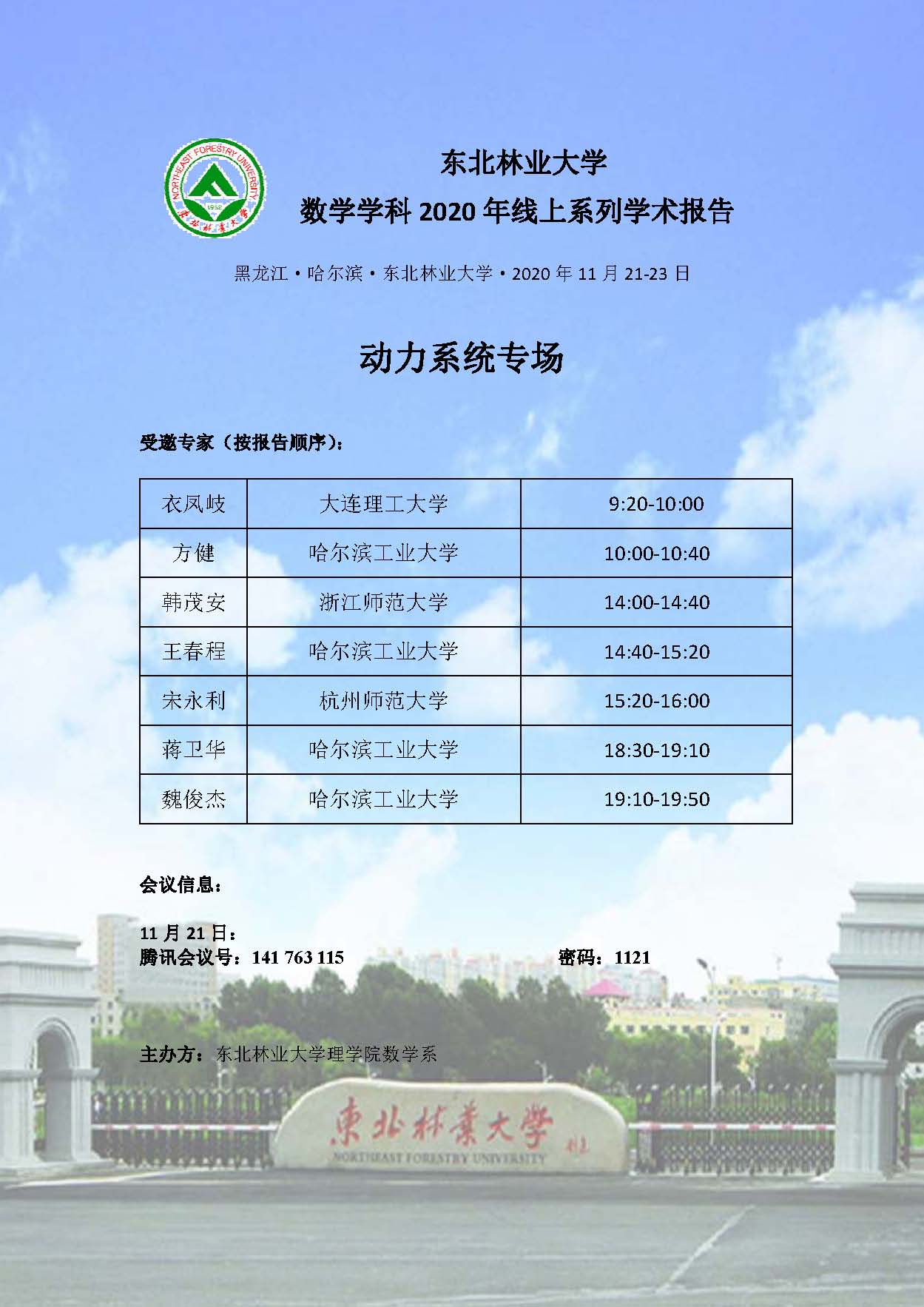 理学院数学学科将于2020年11月21-23日邀请国内相关高校数学学科专家举办线上系列学术报告。