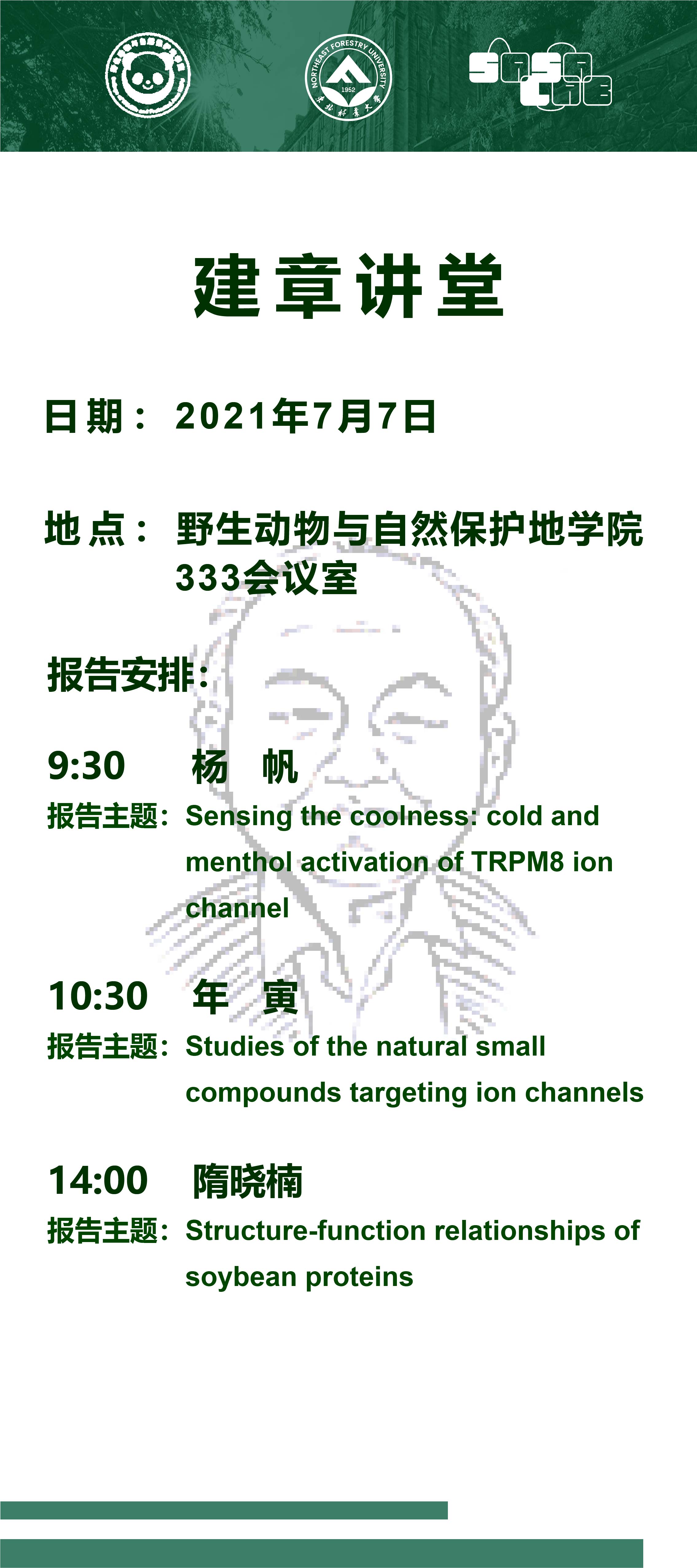 活动主题:秉承东林精神 奋战脱贫一线主讲嘉宾:全国脱贫攻坚先进个人李云海活动时间:2021年7月7日(星期三)18:30活动地点:大学生活动中心(新食堂四楼)、钉钉平台索票时间:2021年7月6日(星期二)18:00参与方式:关注“东林本研之声”官方微信平台(nefuxsh)进行抢票,凭“抢票成功”凭证方可入场,或加入钉钉群参与活动。嘉宾简介:李云海,2007年毕业于我校经济管理学院国际经济与贸易专业,曾获“黑龙江省优秀毕业生...