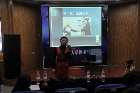 由图书馆、圈点社联合举办的第25期百家对话“有礼走遍天下”于10月19日在图书馆学术报告厅圆满结束。资深礼仪培训专家,实战派讲师,哈尔滨金辰管理顾问有限公司首席培训师,金色海洋管理咨询公司培训师赵桐,以她高...