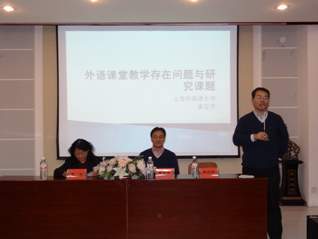??? 12月18日,应外国语学院院长王丹教授的邀请,著名语言学家,中国认知语言学研究会会长,上海外国语大学博士生导师束定芳教授莅临外国语学院指导讲学。针对外国语学院正在进行的大学英语教学改革,束教授在文博...