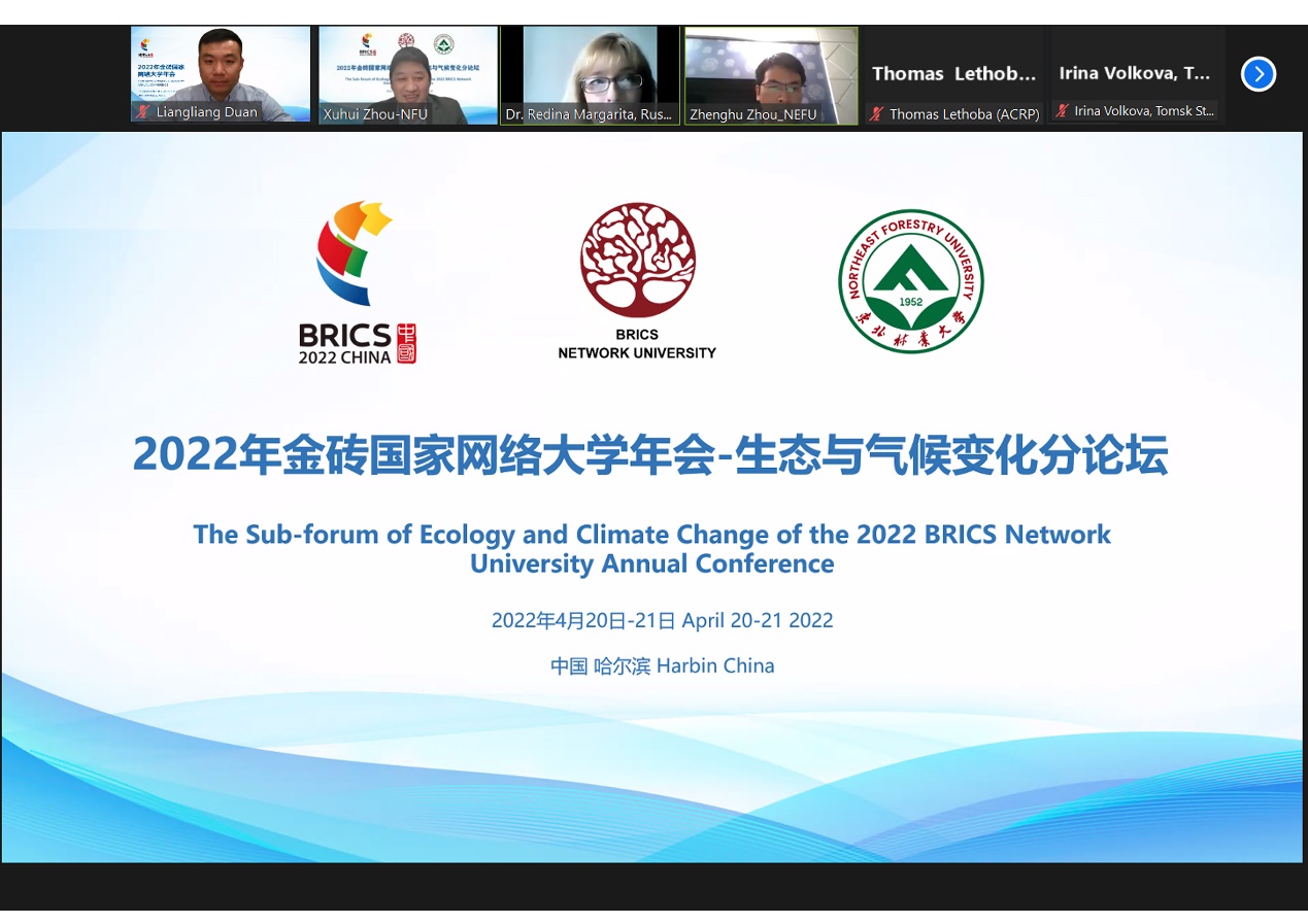 “未来地球对策:碳中和与气候变化应对”国际研讨会暨2022年金砖国家网络大学年会生态和气候变化分论坛于4月20日至21日在线上顺利举行。论坛由我校林学院和国际合作处共同承办,来自俄罗斯人民友谊大学、巴西里约热内卢联邦大学、复旦大学、浙江大学、华东师范大学、北京师范大学、海南大学、河海大学以及我校在内的9所高校的12位专家和学者在大会上做了精彩报告,来自巴西、俄罗斯、印度、中国和南非等金砖国家网络大学成员高...
