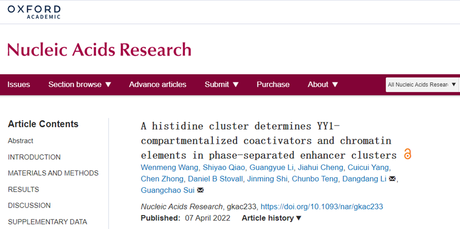 4月7日,我校生命科学学院隋广超教授团队在国际著名学术期刊《核酸研究》NucleicAcidsResearch(一区TOP,IF:16.971)发表了题为“AhistidineclusterdeterminesYY1-compartmentalizedcoactivatorsandchromatinelementsinphase-separatedenhancerclusters”的文章,揭示了乳腺细胞癌变的新机制,也为探寻癌症治疗新靶点提出了新思路。生物大分子的液-液相分离(liquid-liquidphaseseparation)是近年来快速发展的生命科学研究领域。...