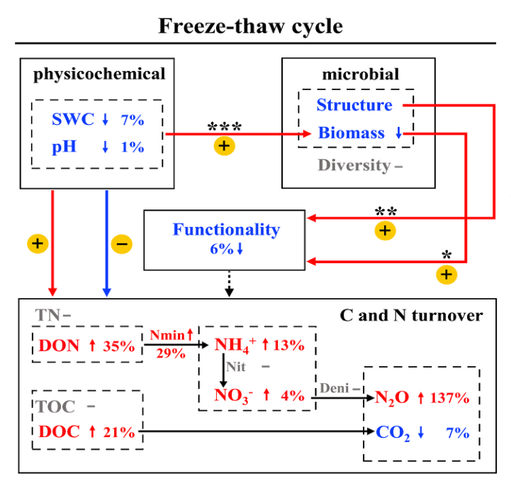 近日,我校东北亚生物多样性研究中心冯富娟团队在土壤学领域经典期刊《SoilBiologyandBiochemistry》(中科院1区,TOP)和《Catena》(中科院1区,TOP)上相继发表题为“Meta-analysisoftheimpactoffreeze–thawcyclesonsoilmicrobialdiversityandCandNdynamics”和“FungalCommunityDiversityDominatesSoilMultifunctionalityinFreeze-ThawEvents”的研究论文,分别从全球数据整合分析和实验验证的角度连续报道了冻融对土壤微生...