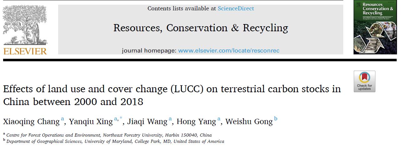 4月13日,我校工程技术学院邢艳秋教授团队在国际顶级期刊《Resources,Conservation&Recycling》(中科院一区,IF:10.204)上发表了题为“Effectsoflanduseandcoverchange(LUCC)onterrestrialcarbonstocksinChinabetween2000and2018”的研究性论文,表明农林活动对陆地生态系统产生明显的碳汇。近几十年来,由于快速的城市化、农业发展和一系列“植树造林”、“退耕还林”、“天然林保护工程”等区域发展和生态保护政策的实...