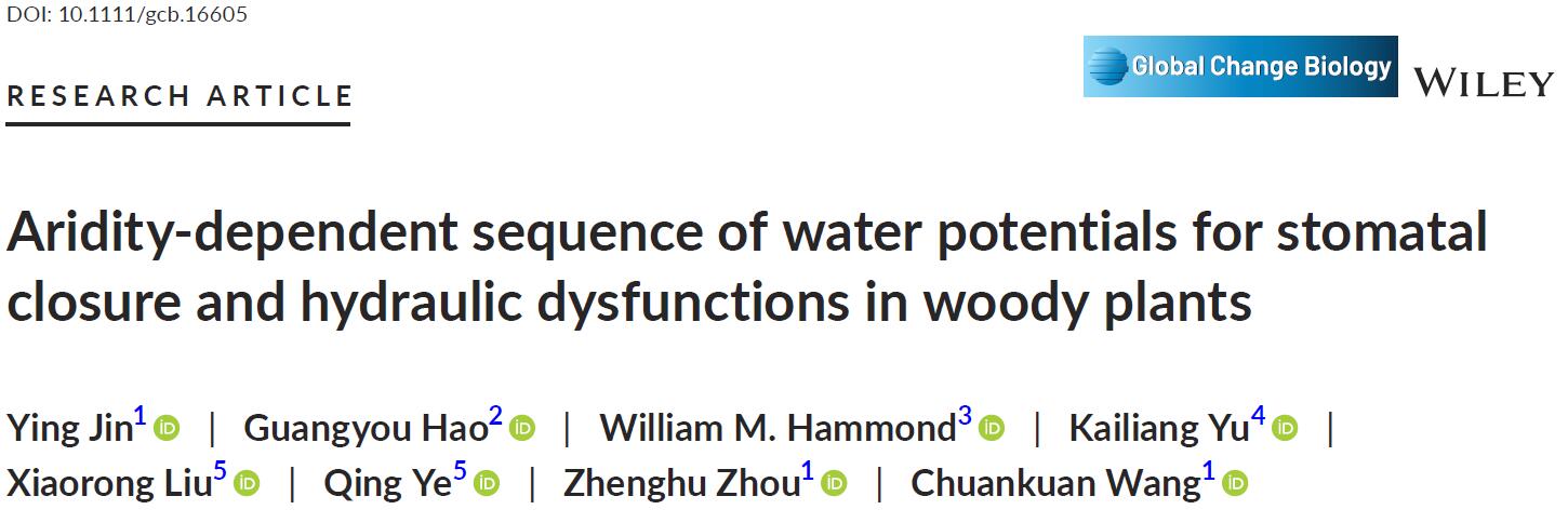 近日,我校生态研究中心王传宽教授团队的青年教师金鹰在国际著名生态学期刊《GlobalChangeBiology》(IF=13.2)发表了题为“Aridity‐dependentsequenceofwaterpotentialsforstomatalclosureandhydraulicdysfu-nctionsinwoodyplants”的研究论文。文章指出了该团队在树木水分关系与全球变化领域的研究新进展。近年来,随着全球气温升高、干旱频发等气候的加剧,全球范围内出现树木大面积死亡现象,对森林生态系统固碳能力等生态...