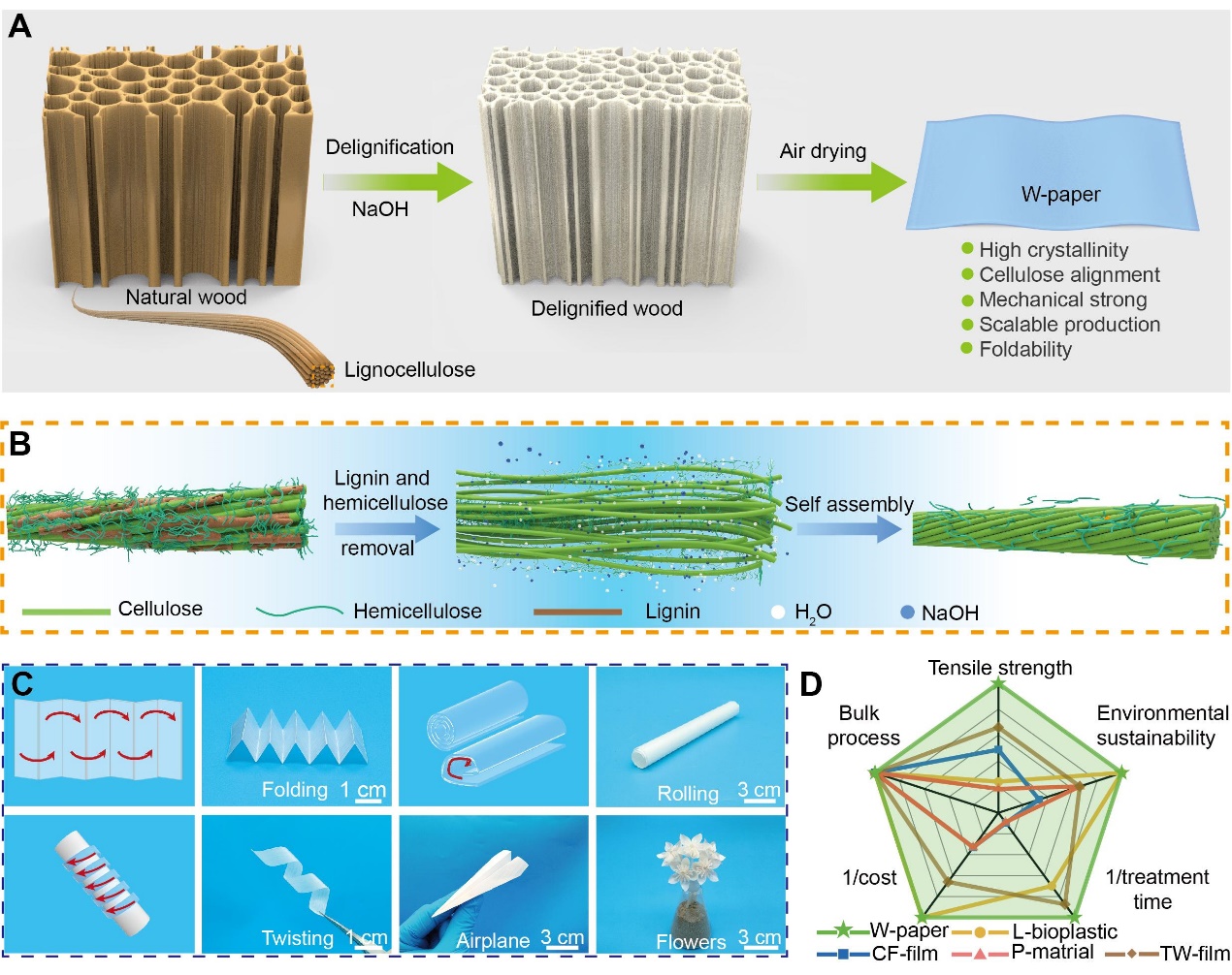 7月26日,国际综合性期刊《科学进展》(ScienceAdvances)在线发表了我校材料科学与工程学院甘文涛教授研究团队题为“Superstrong,Sustainable,OrigamiWoodPaperEnabledbyDual-phaseNanostructureRegulationinCellWalls”的研究论文。该研究首次提出通过两相纳米结构调控,将天然轻木转化为一种兼具高强度和高韧性的木材薄膜,并揭示了其力学增强机理,为木材保护与功能改良提供了新理论。构建晶态-非晶态复合结构是解决材料高...