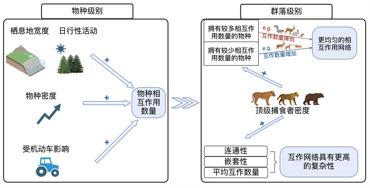虎豹等大型捕食者处于食物链的顶端,在维持生态平衡和塑造物种相互作用网络方面发挥着至关重要的作用。顶级捕食者不仅影响物种数量和分布,还通过微妙的调节机制在生态系统中创造出一种“隐形秩序”。这一深层次的调节机制是生态学研究的前沿领域。近日,我校国家林草局猫科动物研究中心姜广顺团队对顶级捕食者生态功能的研究有了新发现。在探索顶级捕食者在生态系统中作用的同时,还构建了“哺乳动物群落结构—稳定性—顶级捕...