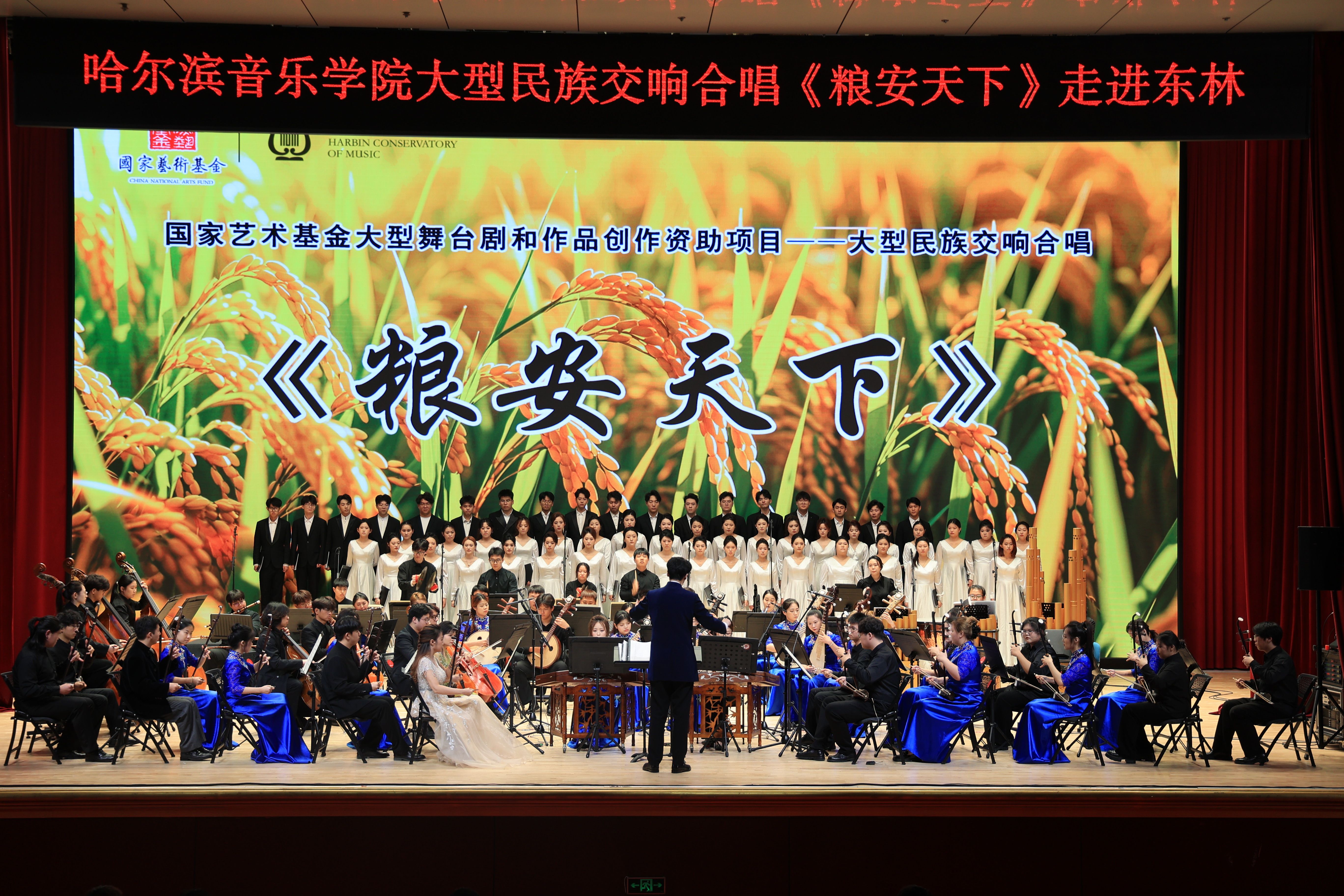 10月16日是第45个世界粮食日,哈尔滨音乐学院大型民族交响合唱《粮安天下》走进东林,在学校科学会堂为近千名师生带来一场震撼心灵的音乐思政大课。哈尔滨音乐学院副院长、党委委员崔志林,我校党委常委、副校长张春雷现场观看演出。这部作品以全球关注的粮食安全为主题,以“北大荒精神”和“中国担当”为底蕴,由《序歌·饥饿的世界》《浩歌·唤醒北大荒》《挽歌·仰望故人墙》《赞歌·珍爱黑土地》《讴歌·种子的梦想》《颂歌·慧...