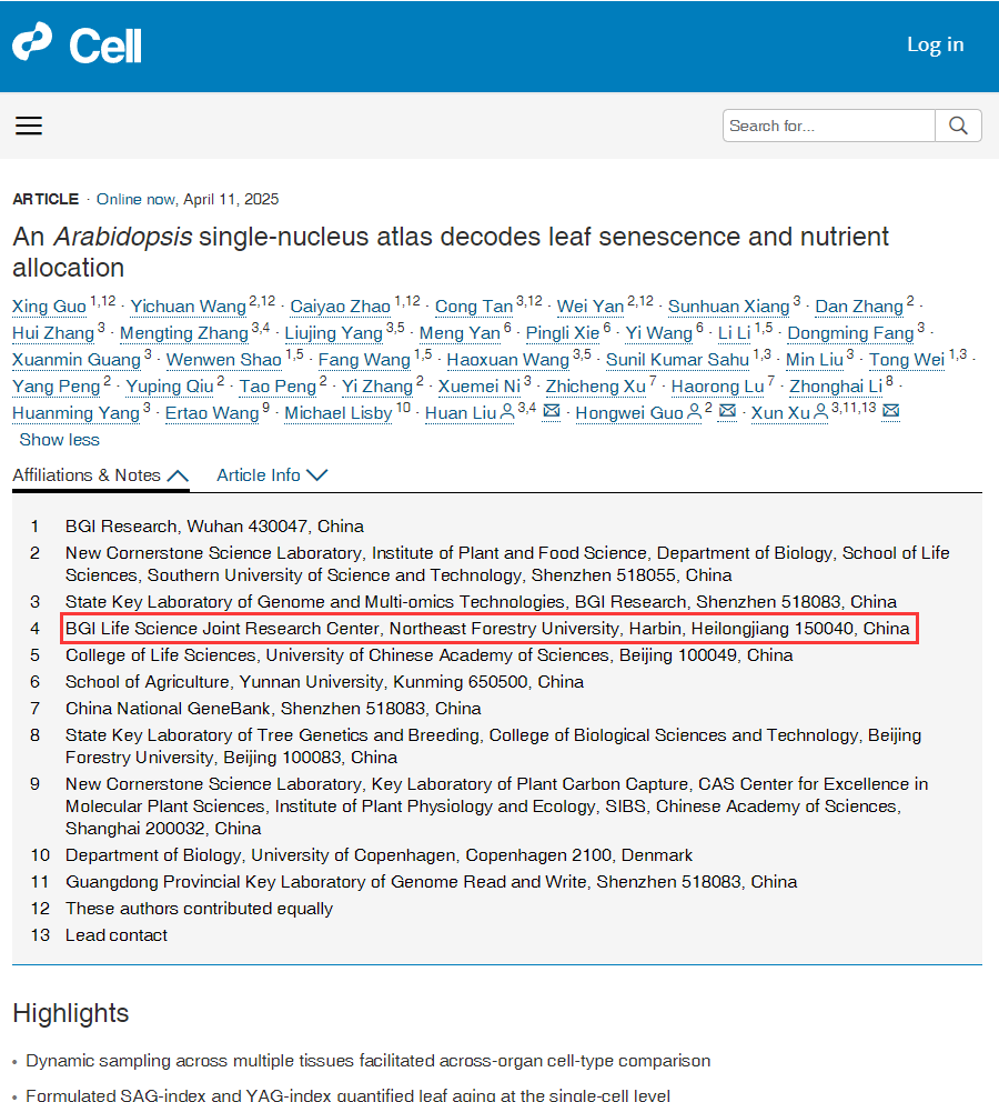 4月11日,我校客座教授、“东林-华大生命科学联合研究中心”刘欢研究员团队,与武汉华大生命科学研究院、南方科技大学等单位合作,在顶级学术期刊细胞(Cell)杂志在线发表了题为AnArabidopsissingle-nucleusatlasdecodesleafsenescenceandnutrientallocation的研究论文。该论文构建了模式生物拟南芥全生命周期单细胞转录组图谱,并创新性地从单细胞水平上解析了叶片衰老进程,描绘了碳/氮的源库转运图景。图片引自cell官网叶片...