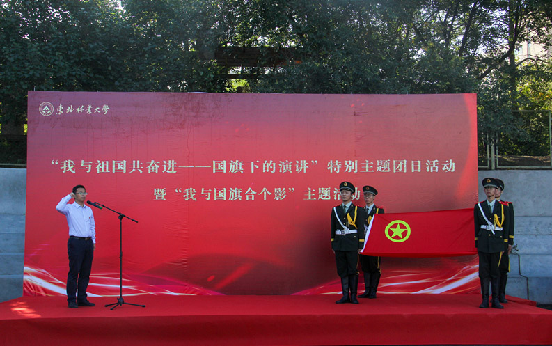 两位共和国同龄人、学校离退休教师代表丁宝永、邹海琦在国旗下讲授主题微团课。丁宝永老师是我校帽儿山实验林场的开拓者之一,他简要回顾了我校“建校伊始,创业维艰”的发展历史,强调了艰辛建设的背后是一代代师生共同努力的结果,激励青年学生珍惜韶华、努力学习、报效祖国。邹海琦老师勉励同学们以科学认知态度培养自身学习能力,树立科学的人生观和价值观,建议青年学生积极响应时代号召,履行义务,承担责任,“不负伟大时代,挂云帆,踏万古江河;济沧海,铸不朽人生!”
