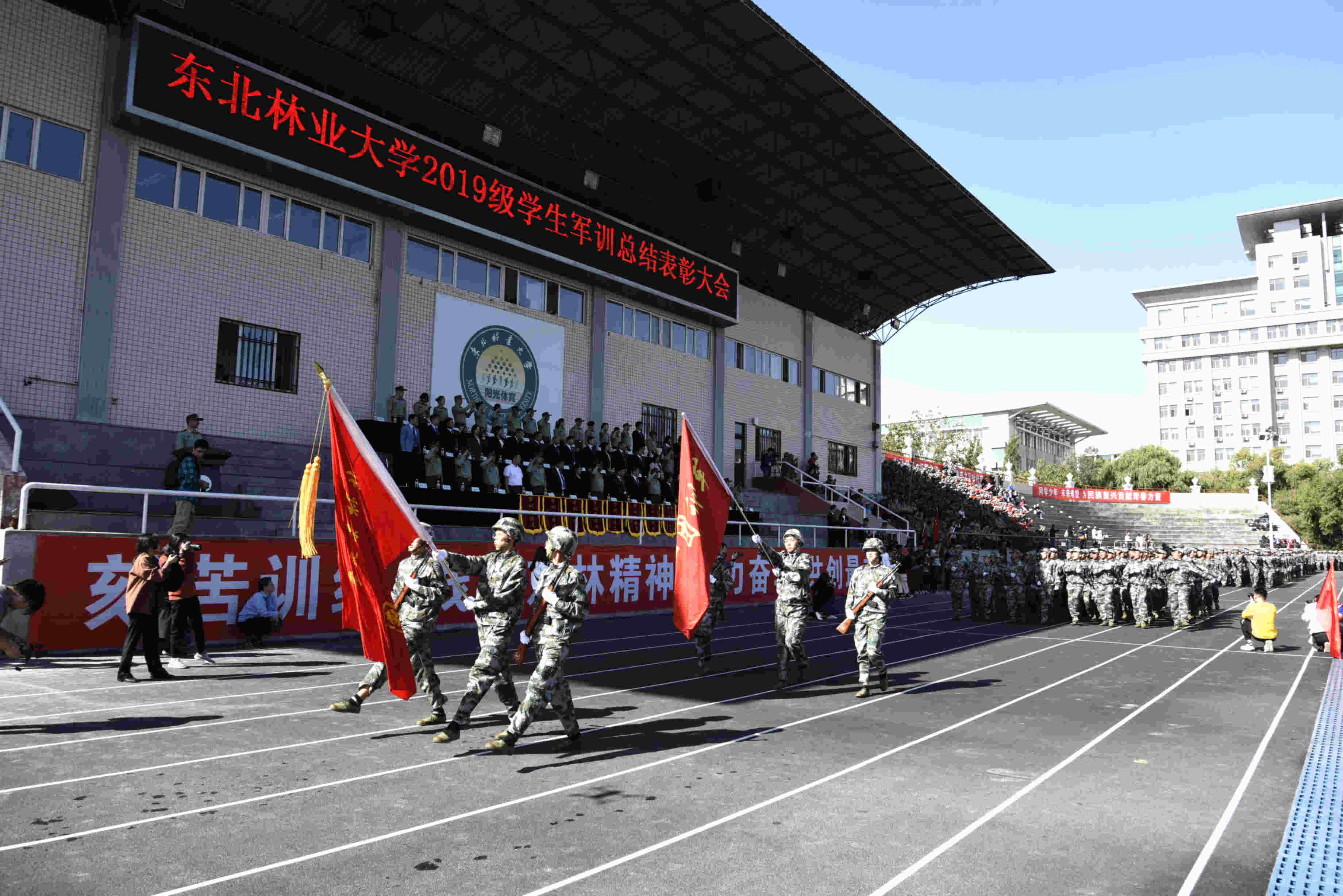 9月15日9时,学校田径场上秋风飒飒、军容整肃,东北林业大学2019级学生军训总结表彰大会在此隆重举行。经过了为期两周的体力与意志的磨砺,全体新同学圆满地完成了各项军事训练任务,以坚定的信念、饱满的热情、顽强的意志交出了进入东林的第一份满意答卷。