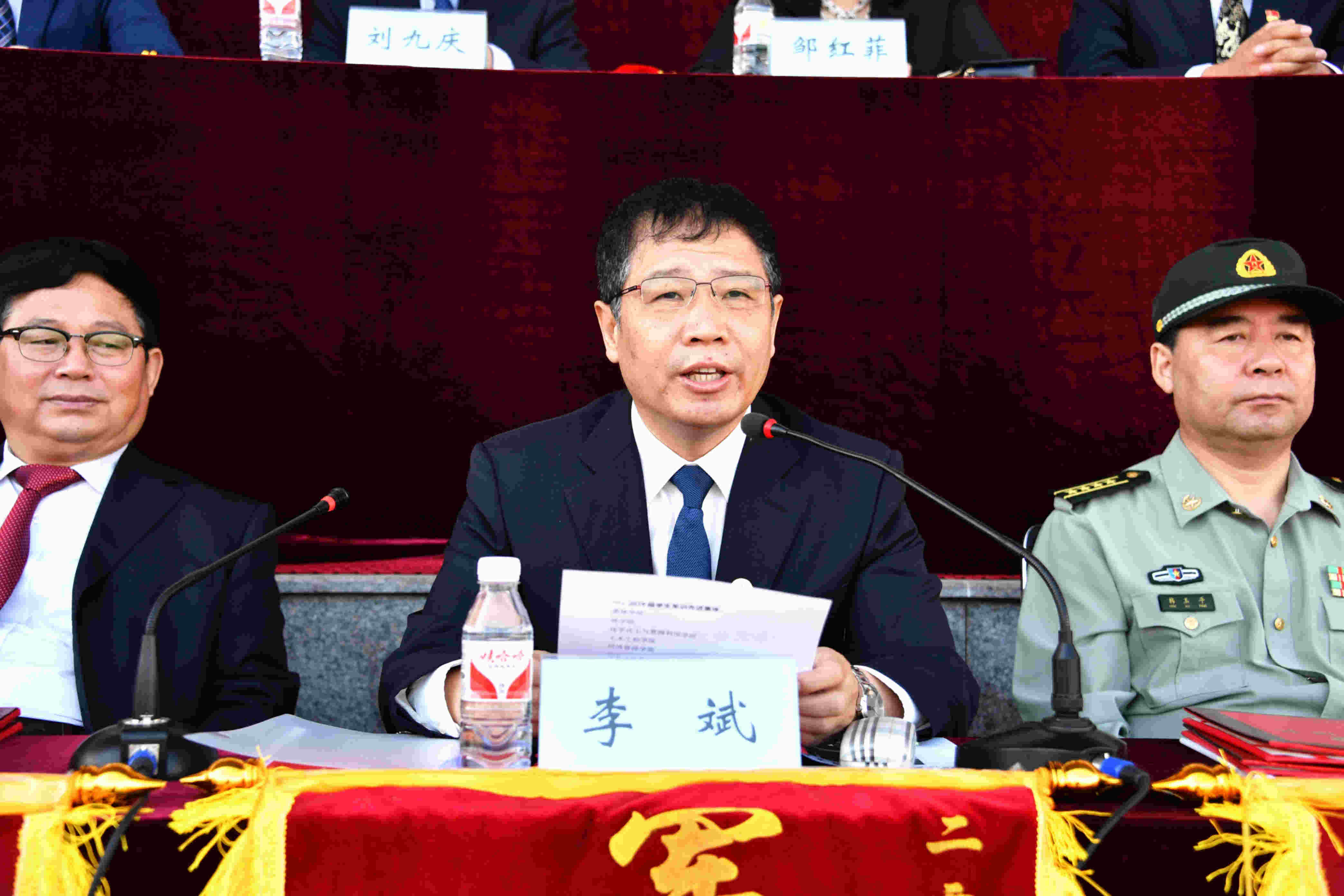 哈尔滨市委常委、哈尔滨警备区政委韩玉平大校,黑龙江省教育厅体育卫生与艺术教育处副处长李建民,哈尔滨市香坊区人民武装部政委许金永上校,承训单位中国人民解放军71375部队部队长刘纪远大校和副部队长路祥军中校以及学校党委书记张志坤,校长李斌,副校长李顺龙,党委副书记陈文慧,党委副书记、纪委书记王玉琦,副校长孙猛,副校长刘守新,副校长、学生军训团政委雒文虎,党委常委、校长助理、学生军训团团长宋文龙出席了大会。学校军训团全体成员、各本科学院党政主要领导、各学院分管学生工作的党委副书记以及2019级辅导员老师和全体学生参加了大会。大会由党委学工部部长、学生处处长、武装部部长、学生军训团参谋长王春海主持。