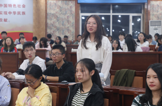 整场活动中,周玉华老师紧紧围绕“我与祖国共命运”,结合自身经历,通过讲述其人生三大阶段的选择与对梦想的追求,给同学们上了一堂生动的思政课,现场学生表示受益匪浅,深受教育和鼓舞。文法学院2019级法律法学专业硕士研究生杨雯同学说:“周老师动情、真情的讲座让我深深地体会到每个人的命运都与国家和民族的命运紧紧相连。青年兴则国家兴,青年强则国家强。我们新时代的青年大学生一定要弘扬和继承前辈们爱国、奉献、拼搏、奋斗的宝贵精神品质,担当起实现‘两个一百年’奋斗目标的历史重任!”