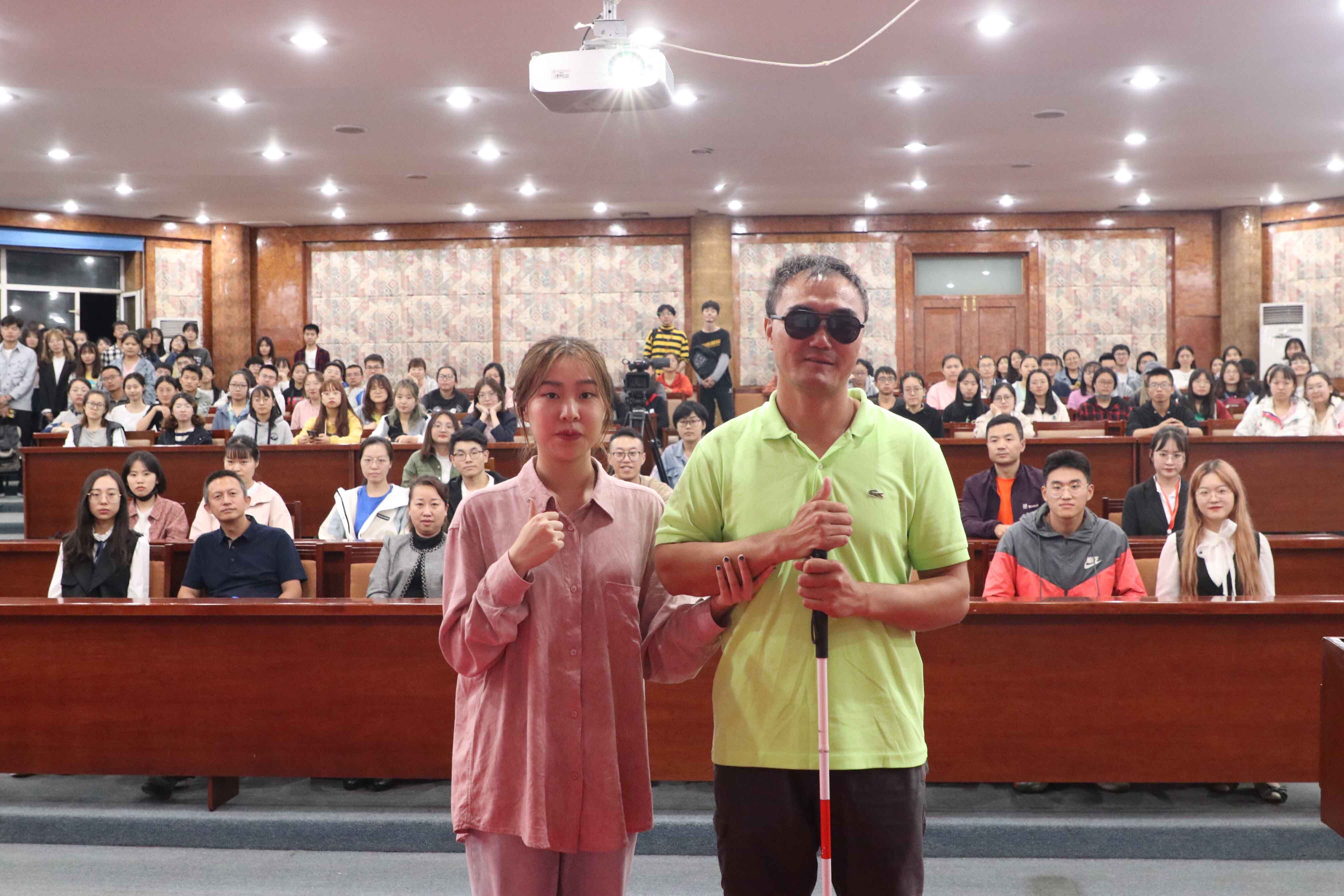 一副墨镜,一根盲杖,一颗百折不挠的心,成就一场追寻光明的旅行。外国语学院2017级学生张红珍在聆听了讲座后不无感慨:“听完曹老师振奋人心的演讲后,我感受到了许多人光彩生活背后的艰辛,我认为面对困难应该心怀希望,追寻阳光,为实现自己的梦想而努力奋斗。”