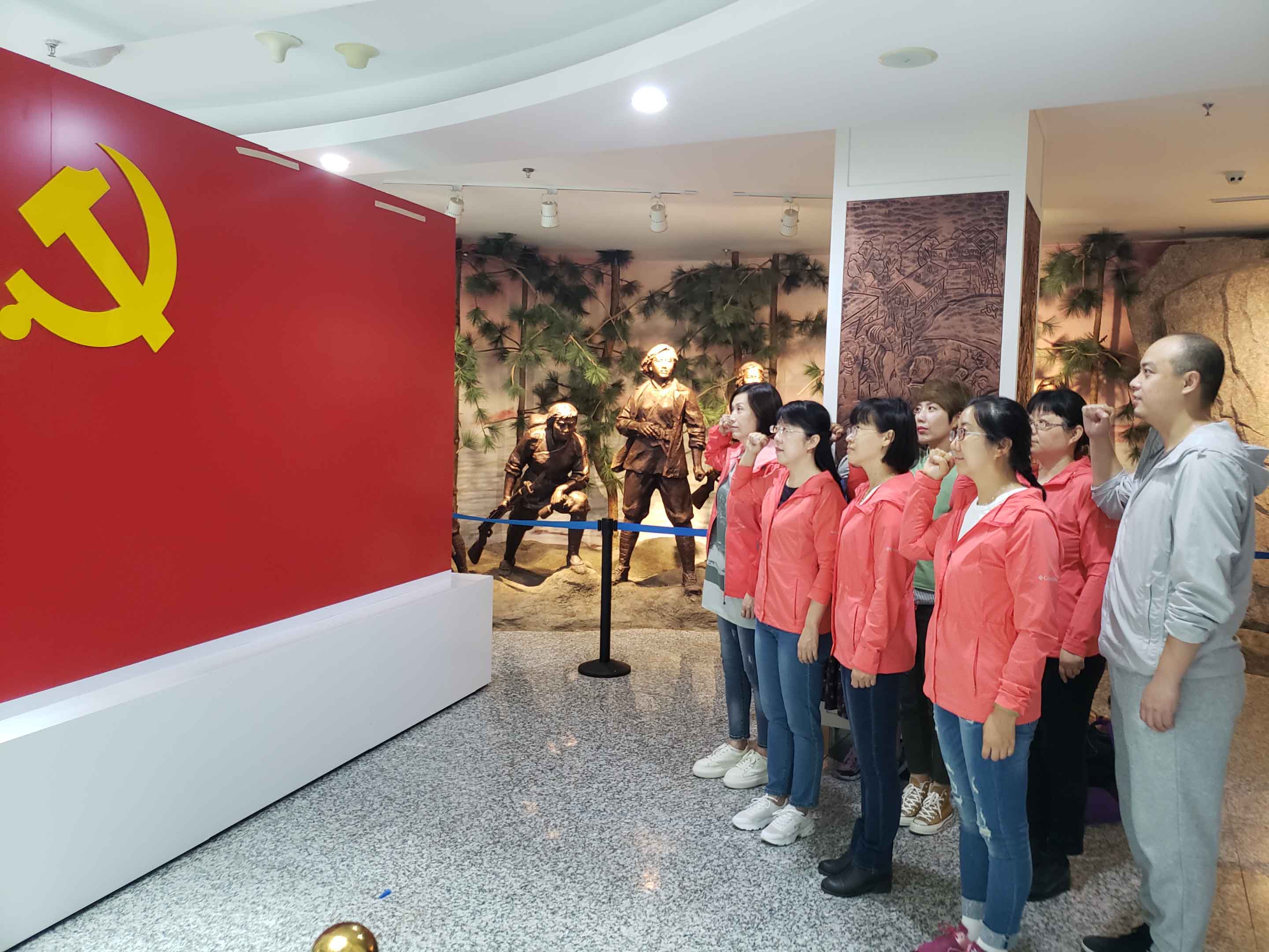 爱国主义教育基地是党员了解党的历史,加强党性锻炼的重要场所,是培养爱国情感,培育民族精神的重要阵地。为了更好地了解党的历史,提高党性修养,2019年9月7日,支部党员来到牡丹江开始了为期一天的爱国主义教育主题实践活动。党员们首先怀着崇敬的心情参观了八女投江纪念馆,重温了中华儿女为民族解放事业与日寇浴血奋战的英雄事迹。在纪念馆的党旗前,支部党员庄严地举起右手,面对党旗重温入党誓词,更加坚定了理想信念。