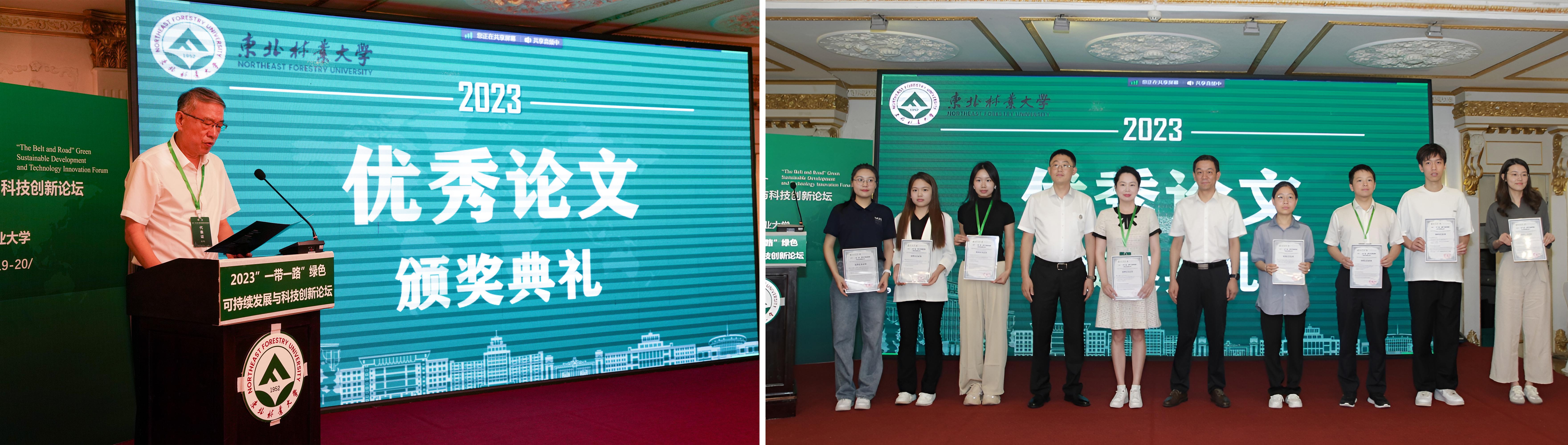 本届论坛评选出2项优秀留学生论文奖。东北林业大学国际交流学院院长骆颖了宣读获奖名单,东北林业大学党委副书记宋吉红向获奖者颁发证书。