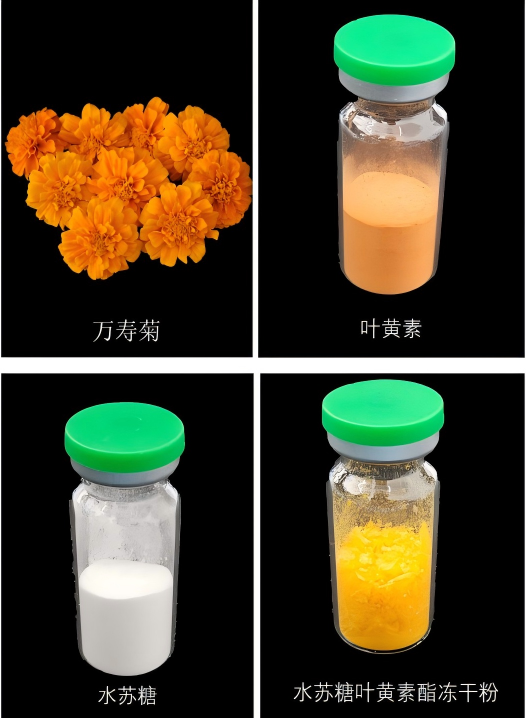 叶黄素是一种来源万寿菊的天然抗氧化剂,已应用于食品加工、医药、保健品、母婴用品等领域。叶黄素在水中的溶解度仅为34.52μg/mL,在胃肠道中易降解,口服吸收率低,严重影响了在健康产品中的功效。本成果以从地灵中提取的“超强双歧因子”水苏糖为亲水分子,通过化学偶联合成水苏糖叶黄素酯,其溶解度高达2.96 mg/mL,溶解度提高近85倍,口服吸收率提高2.26倍,胃肠道中降解率降低近40%。水溶性叶黄素衍生物制备技术改善叶黄素水溶性、生物利用率低的问题。
