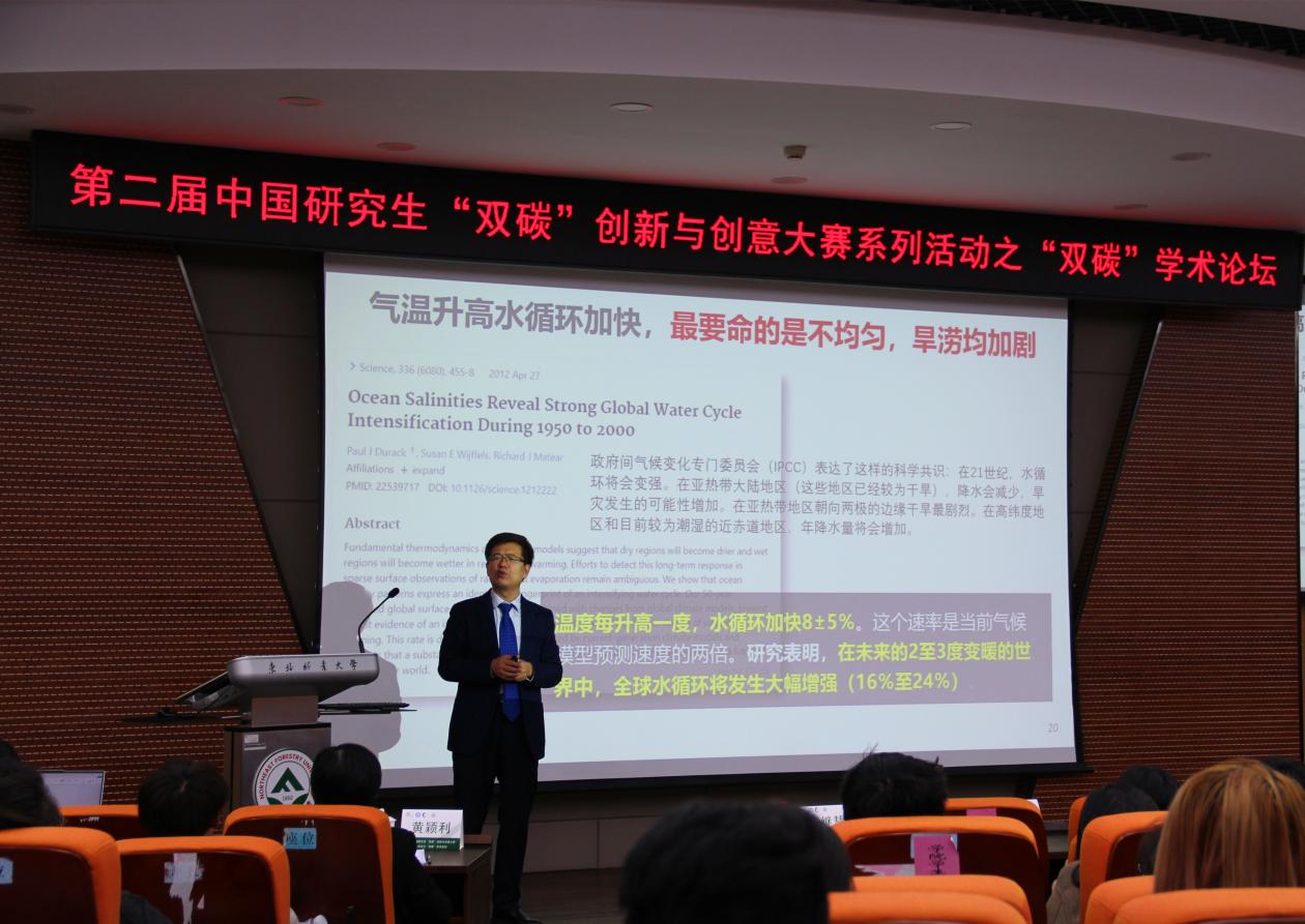 清华大学环境学院教授、清华大学深圳国际研究生院副院长左剑恶作了题为《“双碳”背景下的绿色发展》的报告。他全面、辩证地为大家讲解了全球气候变化及应对、人类文明的发展与当代生态文明、“双碳”目标的挑战与绿色发展路径等内容。