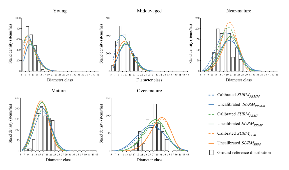 图3无人机激光雷达不同龄组直径分布预测