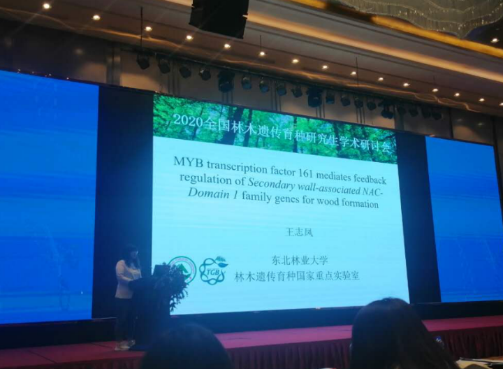 我校博士研究生王志凤和孙怡分别以《MYB161转录因子介导SND1家族基因的反馈调节参与木材形成》和《毛果杨木质素单体合成途径中4-香豆酸辅酶A连接酶(4CL)与莽草酸羟基肉桂酰转移酶(HCT)复合体解析》为题,揭示木质素单体合成的机理,为利用分子育种技术进行林木材性改良提供路径。两名博士生的报告内容新颖,注重科研创新,在众多现场报告当中脱颖而出,获得评审专家一致好评。王志凤和孙怡在众多高校的林业研究生中包揽论坛优秀报告一等奖,代表我校在林木分子生物学研究方向的科研水平处于国内引领地位,实验室将以此为基础,向国际学术前沿不断奋进。
