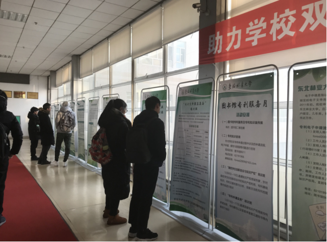 图书馆开展专利服务始于2009年,目前图书馆是中国林业知识产权信息中心、国家知识产权培训黑龙江基地、全国专利文献服务网点,开通了国家知识产权远程培训东北林业大学分站,现面向我校师生提供专利电子申请、专利资助、专利检索与分析、知识产权培训、专利原文传递等工作。几年来,图书馆为我校师生提交专利新申请近3000件,为我校师生节约了大量的时间和费用;此外,图书馆还为师生申报省市知识产权局的专利资助,获得资助金额近200万元;开设的公共选修课《专利申请实务》也深受学生们欢迎;组织各种类型的知识产权培训,数千人接受培训;检索及提供专利原文数万件;主持国家知识产权局、省知识产权据等科研立项近20项,现正努力在专利分析、专利预警重大经济活动、知识产权评议等方面进行探索。